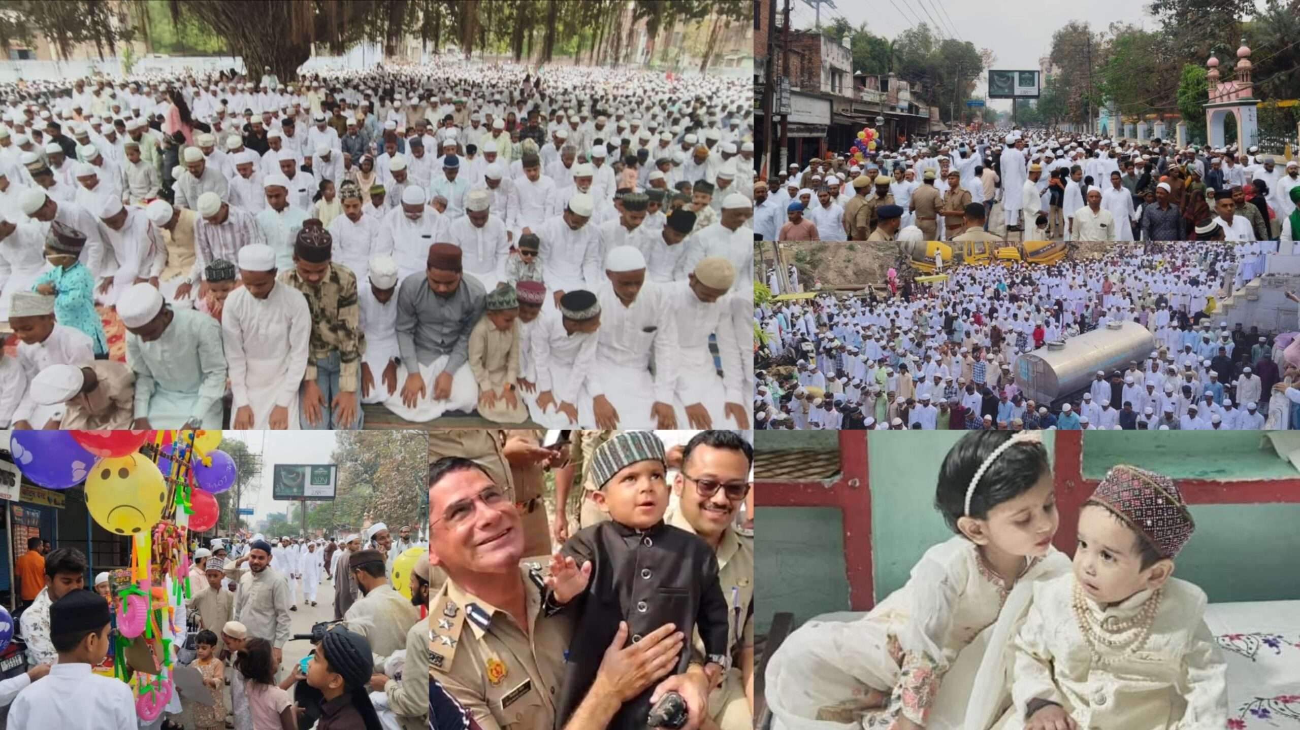वाराणसी में ईद की नमाज सकुशल संपन्न हो गई। इस दौरान ईदगाह लाट सरैयां में डीआईजी की गोद में एक मासूम का खेलना सभी को भा गया। डीआईजी शिवहरी मीना ने नमाज अदा करने आए नन्हें नमाज़ी को गोद मे उठा कर पहले खेलाया और ईद की बधाई दी, बच्चा भी पुलिस अधिकारी की गोद में खेलता और इतराता दिखाई दिया। इस दौरान डीआईजी ने ईद-उल-फितर के अवसर पर ईदगाह लाट सरैया में मुस्तैद पुलिस कर्मियों को सुरक्षा के सम्बन्ध में आवश्यक दिशा-निर्देश दिया। ईद की नमाज को सकुशल सम्पन्न होने पर चौदहो के सरदार मकबूल हसन, हाजी मो. सुहैल, हाजी ओकास अंसारी, इम्तियाज अंसारी ने यहां एक दूसरे से गले मिले और ईद की खुशियां साझा की।