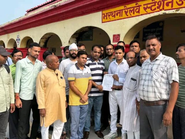 ETAWA NEWS: बुधवार की सुबह अखिल भारतीय ग्राहक पंचायत इटावा के तत्वाधान में ऑन ड्यूटी स्टेशन मास्टर अभिषेक कुमार को ज्ञापन पत्र सौपा गया, रेलमंत्री अश्वनी वैष्णव को संबोधित ज्ञापन में बताया गया कि कोरोना महामारी के दौरान भरथना स्टेशन पर रुकने वाली मुरी, महानंदा, संगम व लिंक एक्सप्रेस ट्रेनों का ठहराव बंद कर दिया गया था, जोकि अब तक बहाल नही किया गया। मांग की गई है कि जनहित में क्षेत्रीयजनों के आवागमन को उपरोक्त ट्रेनों के ठहराव को जल्द बहाल किया जाए, ज्ञापन पत्र में आगे बताया गया कि ट्रेनों के ठहराव से कस्बा समेत ताखा, बकेवर, लखना, बसरेहर, चकरनगर आदि ग्रामीण इलाकों के भी व्यापारी व छात्र आदि लाभान्वित होंगे। ज्ञापन देने वालो में जिलाध्यक्ष निशांत पोरवाल, अध्यक्ष भरथना अनिल श्रीवास्तव, सचिव हिमांशु गुप्ता, कोषाध्यक्ष अमन सोनी, देवाशीष चौहान, ऋषभ पोरवाल, रामप्रकाश पाल, इंद्रपाल सिंह, अमित गुप्ता, मोनू राजावत, संदीप शर्मा, जितेंद्र सिंह आदि मौजूद रहे।