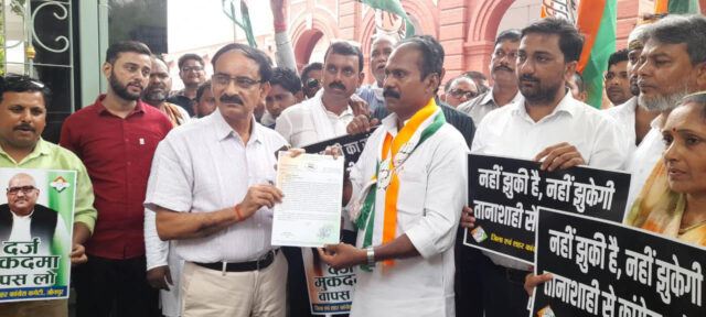 वाराणसी में प्रदेश अध्यक्ष के ऊपर हुए मुकदमें को लेकर कांग्रेसियों ने तहसील पर किया धरना-प्रदर्शन