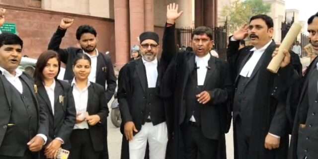 अधिवक्ता सुरक्षा अधिनियम को लेकर वकीलों ने की नारेबाजी, दिया अल्टीमे