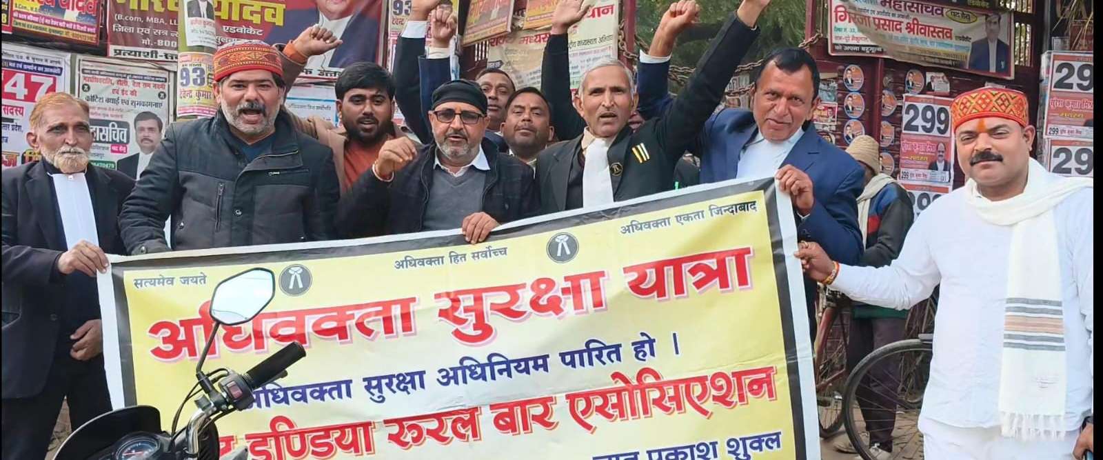 SULTANPUR NEWS: अधिवक्ता सुरक्षा अधिनियम की मांग को लेकर सोमवार को यहां आल इण्डिया रूरल बार एसोसिएसन के बैनरतले अधिवक्ता सुरक्षा यात्रा पहुंची। एसोसिएसन के राष्ट्रीय महासचिव अनिल कुमार तिवारी महेश की अगुवाई में पहुुंची सुरक्षा यात्रा का स्थानीय वकीलों ने गर्मजोशी के साथ स्वागत किया। संसद के बजट सत्र में केंद्र सरकार से अधिवक्ता सुरक्षा अधिनियम विधेयक को पारित कराए जाने की मांग को लेकर वकीलों ने हुंकार भरी। राष्ट्रीय महासचिव अनिल कुमार तिवारी महेश ने कहा कि विभिन्न जनपदों में इस समय अधिवक्ताओं पर लगातार हमले बढ़ रहे हैं। उन्होने कहा कि सरकार संसद के बजट सत्र में अधिवक्ता सुरक्षा अधिनियम विधेयक को पारित कराये वर्ना उनका एसोसिएसन संसद का घेराव करेगा। आम सभा की अध्यक्षता सुल्तानपुर बार एसोसिएसन के पूर्व उपाध्यक्ष बिलाल अहमद ने किया। इस मौके पर अधिवक्ता रवीन्द्र मिश्र, सिराज अहमद, अंकुर वर्मा, प्रणव प्रकाश मिश्रा, कामतानाथ पाण्डेय, आईपी मिश्रा, जनार्दन प्रसाद तिवारी, सियाराम तिवारी, समाजसेवी सत्य नारायण दुबे, पंकज शुक्ला आदि अधिवक्ता मौजूद रहे।