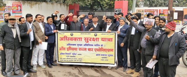 CHITRAKUT NEWS: अधिवक्ता सुरक्षा अधिनियम विधेयक को लेकर वकीलों ने आरपार के संघर्ष का ऐलान किया है। आल इण्डिया रूरल बार एसोसिएसन के द्वारा निकाली जा रही अधिवक्ता सुरक्षा यात्रा लखनऊ से चलकर प्रयागराज, कौशाम्बी होते हुये शुक्रवार को यहां चित्रकूट पहुंची ।डीएम कैम्प कार्यालय के सामने वकीलों ने मांग के समर्थन में जमकर नारेबाजी की। दोपहर बाद एसोसिएसन के राष्ट्रीय अध्यक्ष ज्ञानप्रकाश शुक्ल तथा राष्ट्रीय महासचिव अनिल कुमार तिवारी महेश की अगुवाई में दोपहर पहुंची यहां पहुंची अधिवक्ता सुरक्षा यात्रा का साथियों ने जबरदस्त स्वागत भी किया। वकीलो की मांग है कि संसद के बजट सत्र में यह विधेयक पारित कराया जाये। वहीं प्रदेश की विधानसभा से भी विधेयक के लिए संकल्प प्रस्ताव की आवाज उठायी गयी है। एसोसिएसन के राष्ट्रीय अध्यक्ष ज्ञानप्रकाश शुक्ल ने कहा कि केंद्र व राज्य की सरकार कर्मचारियों, शिक्षकों सभी को स्वास्थ्य बीमा योजना समेत लाभकारी योजनाओं की रोज सौगात दे रही है। उन्होने कहा कि वकीलो की सरकार के द्वारा हर कदम पर बरती जा रही उपेक्षा अब बर्दास्त नही किया जाएगा। उन्होने कहा कि संसद के बजट सत्र में अधिवक्ता सुरक्षा अधिनियम विधेयक पारित नही हुआ तब वकील संसद से लेकर विधानसभा तक का चरणबद्ध घेराव करेंगे। राष्ट्रीय महासचिव अनिल कुमार तिवारी महेश ने कहा कि सरकार युवा अधिवक्ता प्रोत्साहन भत्ता तथा बुजुर्ग अधिवक्ता पेंशन के साथ एडवोकेट प्रोटेक्शन एक्ट को लेकर वकीलों के साथ छलावा कर रही है। अधिवक्ता सुरक्षा यात्रा के प्रदेश प्रभारी विकास मिश्र ने साथियों को प्रस्तावित विधेयक में सुरक्षा व सुविधाओं के एजेण्डे से अवगत कराया। कार्यक्रम की अध्यक्षता वरिष्ठ अधिवक्ता पूर्व अध्यक्ष सुरेश कुमार तिवारी व संचालन मण्डल अध्यक्ष सत्येंद्र नाथ मिश्र राजू ने किया।इस मौके पर श्याम कृष्ण, सुरेन्द्र सिंह कछवाह,कृष्ण कुमार सिंह, जे.पी.सिंह, अनुराग पटेल, रमेश मिश्र, अनश खान,अनुज श्रीवास्तव, आरती यादव,रण मिश्र, विराट पटेल,सुरेश कुमार सिंह, राजेश कुमार शुक्ला, राम गोपाल सिंह आदि अधिवक्ता मौजूद रहे।वरिष्ठ अधिवक्ता राम मिलन मिश्र की अगुवाई मे भारी तादाद मे यंहा वकीलों ने अधिवक्ता सूरक्षा यात्रा का गर्मजोशी के साथ स्वागत किया।डीएम कैम्प कार्यालय के सामने अधिवक्ताओ की नारेबाजी देख पुलिसकर्मियों को भी एतिहातन सर्तक देखा गया।