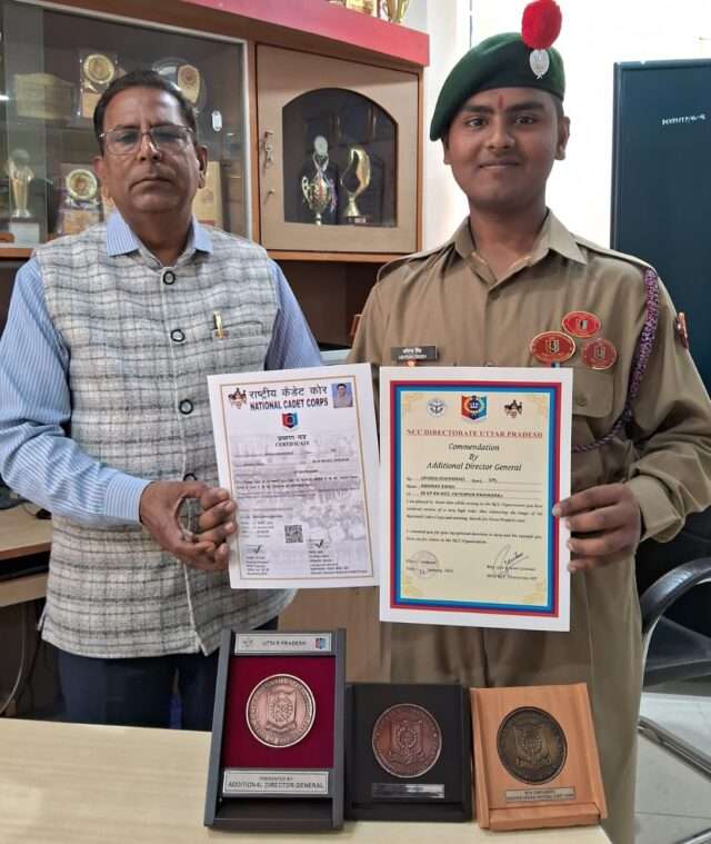 FATEHPUR NEWS: केन्द्रीय माध्यमिक शिक्षा बोर्ड (सीबीएसई), नई दिल्ली से सम्बद्ध महर्षि विद्या मन्दिर सीनियर सेकेण्ड्री स्कूल फतेहपुर के कक्षा 10 के छात्र मास्टर अभिनव सिंह ने विद्यालय और जिले का नाम रोशन किया है। अभिनव सिंह का चयन 60 यू.पी. एन.सी.सी. बटालियन द्वारा उत्कृष्ट प्रदर्शन के आधार पर 26 जनवरी को नई दिल्ली में आयोजित गणतंत्र दिवस परेड में भाग लेने के लिए किया गया था। इस दौरान देश के सभी राज्यों से आए एन.सी.सी. कैडेट्स के बीच विभिन्न प्रतियोगिताएं आयोजित की गईं, जिनमें अभिनव सिंह ने शानदार प्रदर्शन किया। उत्कृष्ट प्रदर्शन के लिए अभिनव सिंह को लेफ्टिनेंट जनरल द्वारा प्रशस्ति पत्र एवं मेडल देकर सम्मानित किया गया। अभिनव की इस उपलब्धि पर एन.सी.सी. शिक्षक रोहित दत्त, बिपिन मिश्रा एवं विद्यालय के प्रधानाचार्य प्रमोद कुमार त्रिपाठी ने हर्ष व्यक्त करते हुए उसे बधाई दी और उसके उज्ज्वल भविष्य की कामना की।