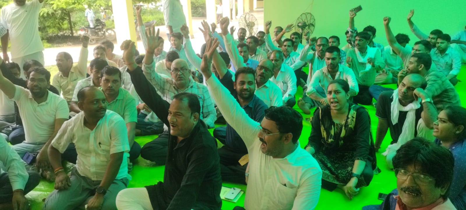 अभियुक्त की गिरफ्तारी के लिए लेखपाल संघ का धरना जारी, वकीलों ने किया मुंशी का बचाव
