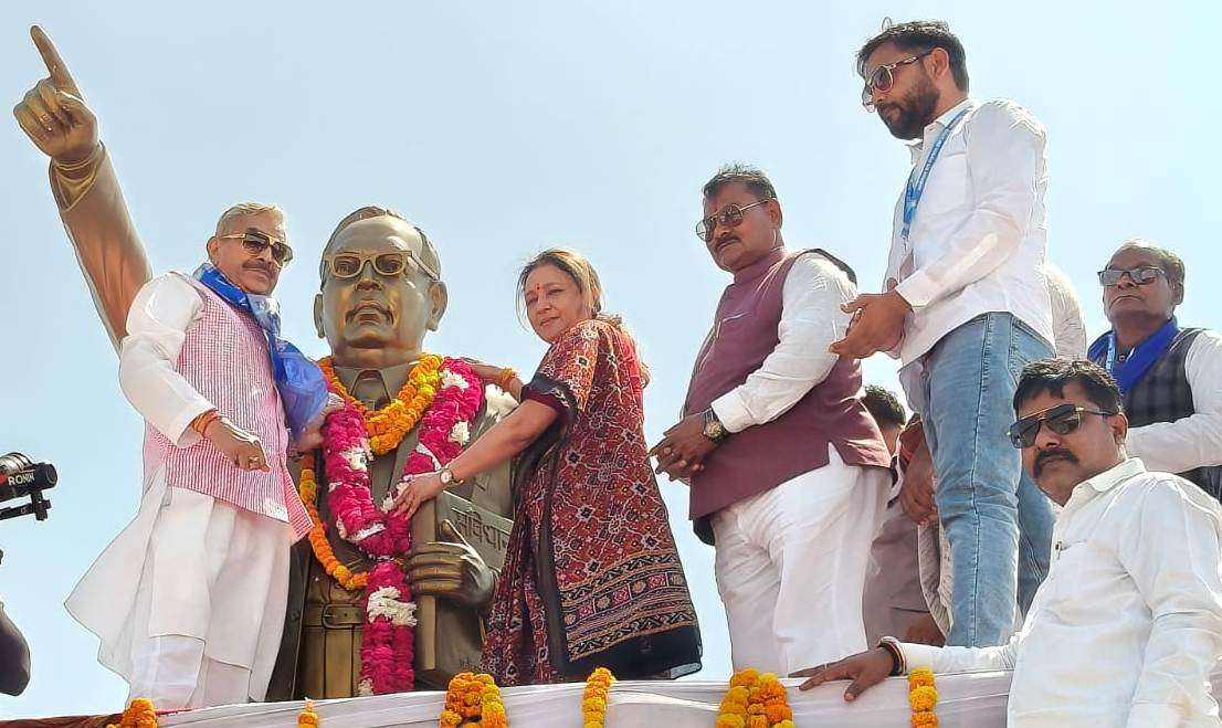 PRATAPGARH NEWS: अम्बेडकर जयन्ती पर लालगंज पार्क में मंगलवार को करीब आठ से दस हजार की उमड़ी भीड़ में सांसद प्रमोद तिवारी व विधायक आराधना मिश्रा मोना की ओर से सौगातो की बौछार से गजब का उत्साह दिखा। नेशनल हाइवे रायबरेली प्रतापगढ़ रोड पर मुख्य गेट से कार्यक्रम स्थल तक जय भीम के घोष के साथ उमड़ी भीड़ को देख प्रशासन को भी चकित देखा गया। कार्यक्रम स्थल पर महिलाओं की जबरदस्त भीड़ के बीच विधायक आराधना मिश्रा मोना को लेकर खासी उत्सुकता दिखी। विशाल मंच से सांसद प्रमोद तिवारी व विधायक मोना बार बार भीड के उत्साह को निहारते दिखे। जिले में डॉ. अम्बेडकर की यह पहली विशाल मूर्ति के साथ जयन्ती पर उत्सव भवन, पार्क तथा अन्य सुविधाओं की सांसद प्रमोद तिवारी व विधायक मोना की घोषणाओं से उत्साह व उमंग तथा जोश और बढ़ता गया। सुबह से ही चारों तरफ से बाबा साहब के चित्र के साथ ढोल नगाड़े पर नाचते गाते डॉ. अम्बेडकर के अनुयायी कार्यक्रम स्थल पर पहुंचने लगे थे। सांसद प्रमोद तिवारी व विधायक मोना के कार्यक्रम स्थल पर पहुंचते ही अचानक भीड़ एकाएक बढ़ गयी। लालगंज कोतवाल फोर्स के अलावा फायर बिग्रेड के भी जवानों के साथ शांति व्यवस्था को लेकर मशक्कत में आ डटे।