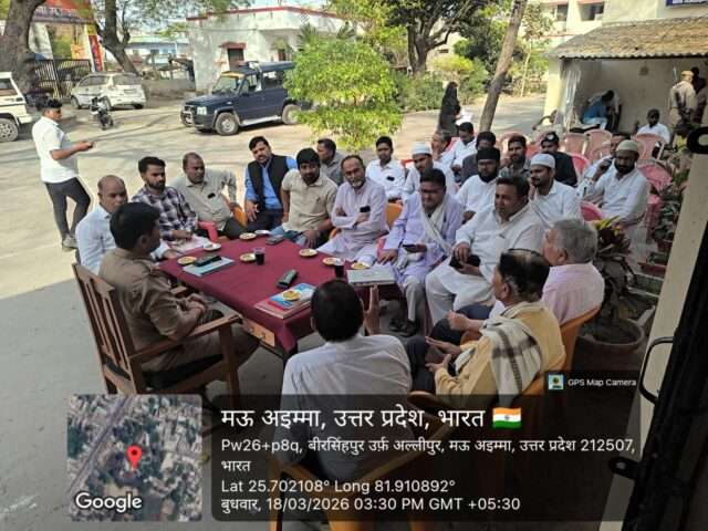 मऊआइमा (प्रातःकाल एक्सप्रेस)। मऊआइमा थाना परिसर में आगामी त्यौहार नवरात्रि, अलविदा जुमा, ईद उल फितर को लेकर बुधवार को पीस कमेटी की बैठक आयोजित की गई, जिसमें आगामी त्यौहार को शांतिपूर्वक संपन्न कराने हेतु अपील की गई थाना अध्यक्ष पंकज अवस्थी ने कहा त्यौहार में किसी भी प्रकार का व्यवधान नहीं होना चाहिए त्योहार को शांतिपूर्वक मनाया जाए यदि कहीं किसी प्रकार की समस्या होती है तो मुझे अवगत कराया जाए। बैठक में मुख्य रूप से नगर पंचायत अध्यक्ष शोएब अंसारी, डॉ नदीम इंतखाब,प्रधान तीरथ यादव के अलावा मस्जिदों के इमाम, राज्य सेतु निगम वा विद्युत विभाग के अधिकारी मौजूद रहे।