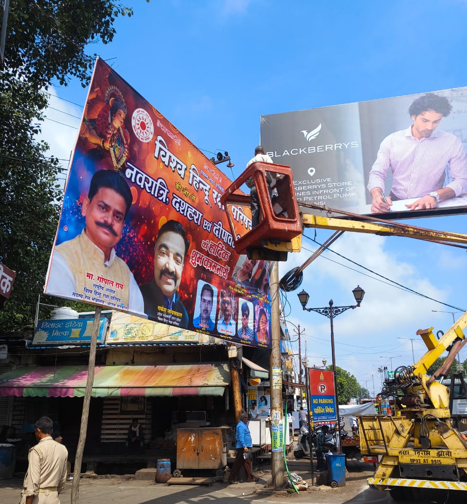 JHANSI NEWS: शासन के निर्देशों के क्रम में नगर आयुक्त  के निर्देशों के क्रम में एवं अपर नगर आयुक्त के नेतृत्व में नगर निगम सीमान्तर्गत शहर में अनाधिकृत रूप से लोगों द्वारा चौराहों, मुख्य मार्गो आदि जगहों पर बल्लियों पर होर्डिंगें, कटआउट, कियास्क लगायी गयी थी, जिसमे ईलाइट चौराहा, खुशीपुरा, बस स्टैण्ड, रिसाला चुंगी, आवास विकास चौराहा आदि स्थानों पर अनाधिकृत रूप से लगी 53 होर्डिंग, 100 कटआउट, 150 कियास्क कुल 303 अवैध विज्ञापन पटों को अभियान चलाकर हटाया गया। साथ ही यह अभियान निरन्तर जारी रहेगा।