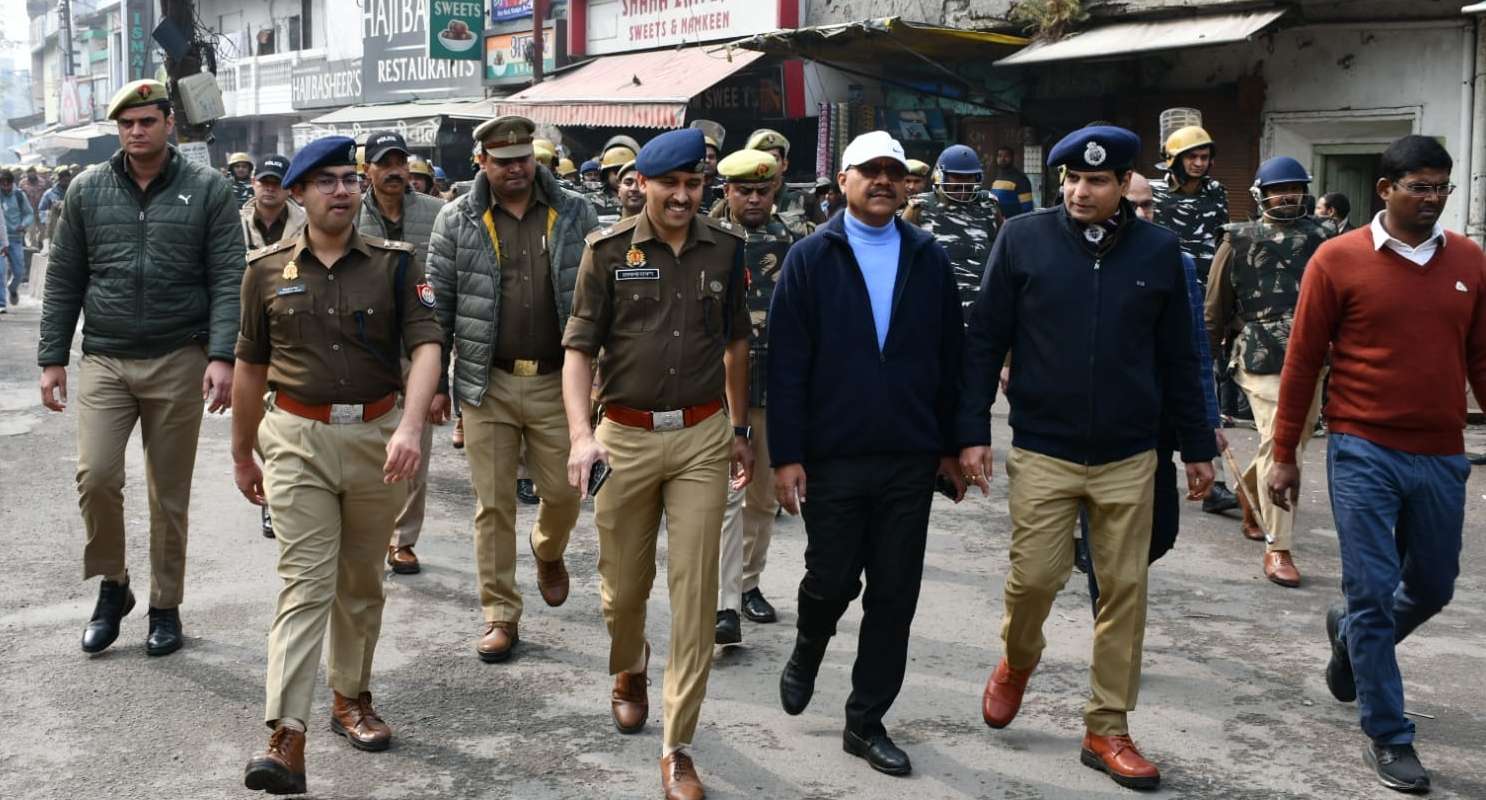 MUZAFFARNAGAR NEWS: आगामी पर्व व त्यौहारों संत रविदास जयंती, शब-ए-बारात आदि के दृष्टिगत जनपद मुजफ्फरनगर में कानून एवं शान्ति व्यस्था बनाये रखने तथा सुरक्षा व्यवस्था सुदृढ़ रखने के उद्देश्य से रविवार को जिलाधिकारी उमेश मिश्रा एवं वरिष्ठ पुलिस अधीक्षक श्री संजय कुमार वर्मा द्वारा पुलिस एवं प्रशासनिक अधिकारीगण के साथ नगरक्षेत्र के थाना खालापार व कोतवाली नगर के अन्तर्गत प्रमुख चौराहो, बाजारों, संवेदनशील स्थानों तथा मिश्रित आबादी वाले क्षेत्रों में पुलिस बल के साथ मय दंगा नियंत्रण उपकरण के साथ फ्लैग मार्च कर सुरक्षा व्यवस्था का जायजा लिया गया तथा आमजन को सुरक्षा का एहसास कराया गया। फ्लैग मार्च के दौरान अपर जिलाधिकारी प्रशासन संजय कुमार सिंह, पुलिस अधीक्षक नगर सत्यनारायण प्रजापत, नगर मजिस्ट्रेट पंकज प्रकाश राठौर, सहायक पुलिस अधीक्षक क्षेत्राधिकारी नगर सिद्धार्थ के0 मिश्रा, थाना प्रभारी कोतवाली नगर बबलू कुमार, थाना प्रभारी खालापार महावीर सिंह सहित पुलिस व प्रशासन के अन्य अधिकारी कर्मचारीगण मौजूद रहे।