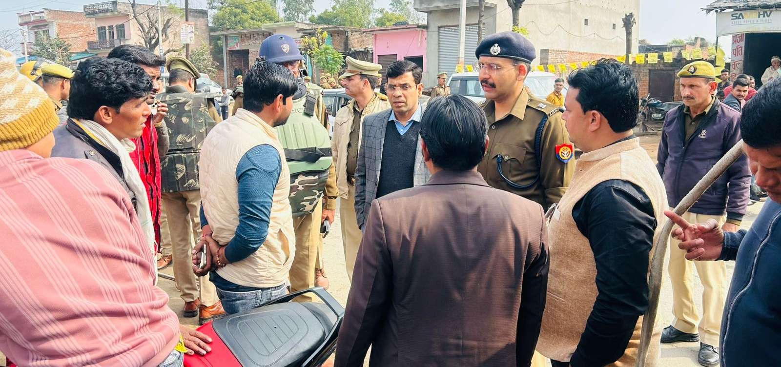 MUZAFFARNAGAR NEWS: आगामी पर्व व त्यौहारों संत रविदास जयंती, शब-ए-बारात आदि के दृष्टिगत जनपद में कानून एवं शान्ति व्यस्था बनाये रखने तथा सुरक्षा व्यवस्था सुदृढ़ रखने के उद्देश्य से रविवार को पुलिस अधीक्षक ग्रामीण  आदित्य बंसल एवं अपर जिलाधिकारी(वित्त)  गजेन्द्र सिंह द्वारा पुलिस बल के साथ थानाक्षेत्र भोपा के अन्तर्गत प्रमुख चौराहो, बाजारों, संवेदनशील स्थानों तथा मिश्रित आबादी वाले क्षेत्रों में पुलिस बल के साथ मय दंगा नियंत्रण उपकरण के साथ फ्लैग मार्च कर सुरक्षा व्यवस्था का जायजा लिया गया तथा आमजन को सुरक्षा का एहसास कराया गया। फ्लैग मार्च के दौरान क्षेत्राधिकारी भोपा  देववृत बाजपेई, प्र0नि0 भोपा  जसवीर सिंह सहित पुलिस व प्रशासन के अन्य अधिकारी कर्मचारीगण मौजूद रहे। महोदय द्वारा अधीनस्थ अधिकारी कर्मचारीगण को क्षेत्र में सतर्क दृष्टि रखते हुए भ्रमणशील रहने, बाजारों व भीड-भाड वाले स्थानों पर नियमित गस्त करने, संदिग्ध व्यक्ति वाहनों की चेकिंग करने, जनपद में सामप्रादायिक सौहार्द बिगाडने की कोशिश करने वालों असामाजिक तत्वों हुडदंग करने वालों पर तत्काल कार्यवाही हेतु निर्देशित किया गया साथ ही स्थानीय लोगों से संवाद कर सभी को त्यौहारों के दौरान आपसी भाईचारा बनाए रखने, अफवाहों पर ध्यान न देने व अफवाह की पुष्टि पुलिस प्रशासन से करने, सोशल मीडिया पर किसी भी तरह की आपत्तिजनक भ्रामक पोस्ट न शेयर करने तथा आपसी सौहार्द बिगाडने की कोशिश करने वालों की सूचना तत्काल पुलिस को देने की अपील की गयी।