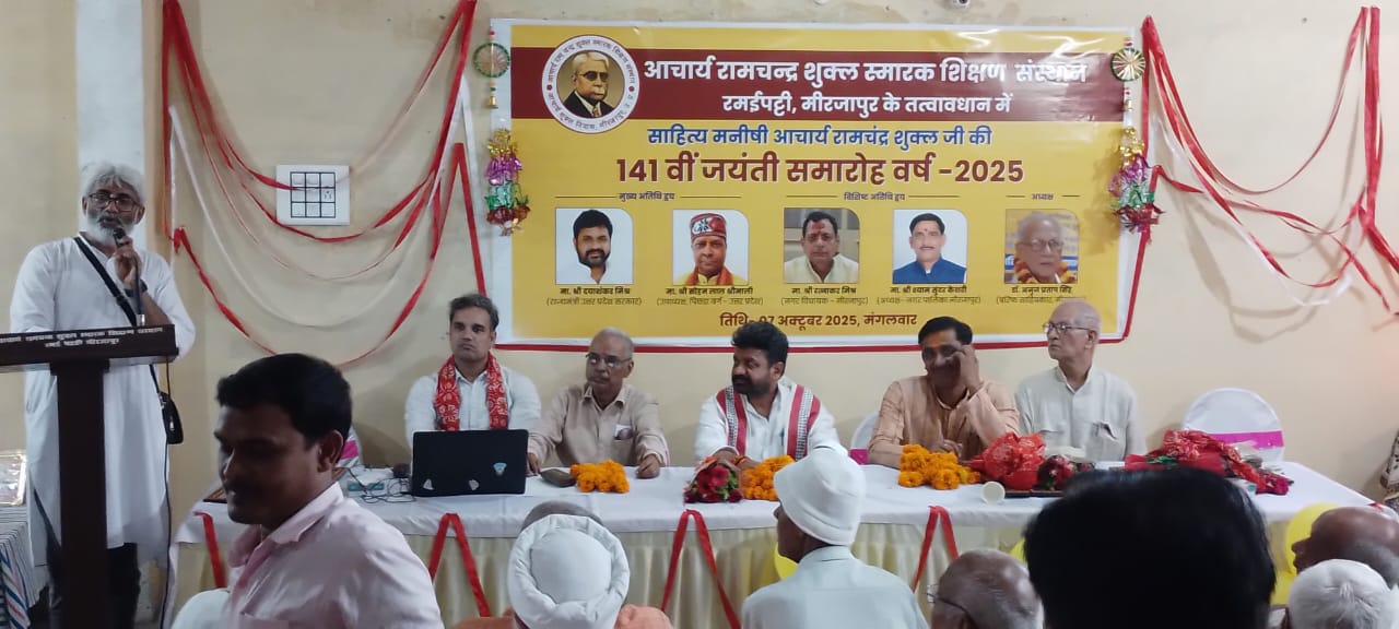MIRZAPUR NEWS: आचार्य रामचंद्र शुक्ल स्मारक शिक्षण संस्थान के तत्वावधान में हिंदी विभूति आचार्य रामचंद्र शुक्ल की 141 वीं जयंती व महर्षि वाल्मीकि जी की जयंती हर्षोल्लास के साथ मनाई गई। कार्यक्रम के मुख्य अतिथि डॉ. दयाशंकर मिश्र (राज्य मंत्री उत्तर प्रदेश सरकार) व विशिष्ट अतिथि नगर पालिका मिर्जापुर अध्यक्ष श्याम सुंदर केसरी मंचासीन रहे। कार्यक्रम की अध्यक्षता डॉ अनुज प्रताप सिंह पूर्व एसोसिएट प्रोफेसर हिंदी विभाग ने की। संचालन आनंद अमित ने किया। स्वागत भाषण व धन्यवाद राकेश चंद्र शुक्ल ने किया। कार्यक्रम का प्रारंभ मुख्य अतिथि ने आचार्य रामचंद्र शुक्ल और महर्षि वाल्मीकि की तस्वीर पर पुष्प अर्पित करके किया। आचार्य शुक्ल के पौत्र राकेश चंद्र शुक्ल ने अतिथियों का अंगवस्त्र और स्मृति चिह्न देकर सम्मानित किया। गाजीपुर के चर्चित साहित्यकार और प्रखर वक्ता माधव कृष्ण को आचार्य राम चंद्र शुक्ल सम्मान 2025 दिया गया। पिछले 2 वर्षों से यह सम्मान आलोचना साहित्य में विशेष योगदान के लिए चुने हुए साहित्यकार को दिया जा रहा है। अध्यक्षता कर रहे डॉ अनुज प्रताप सिंह ने अपने उद्बोधन में कहा कि आचार्य रामचंद्र शुक्ल ने विपरीत परिस्थितियों में भी हिंदी साहित्य का इतिहास लिखने का कार्य किया।