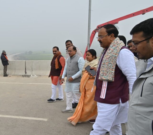LUCKNOW NEWS: उपमुख्यमंत्री केशव प्रसाद मौर्य ने मंगलवार को प्रयागराज के मलाक हरहर से बेली चौराहे तक गंगा नदी पर बन रहे सिक्स लेन ब्रिज का निरीक्षण किया। इस अवसर पर उपमुख्यमंत्री ने कार्यदायी संस्था एस0पी0एस0 कंस्ट्रक्शन इंडिया प्रा0लि0 एवं सड़क परिवहन एवं राजमार्ग मंत्रालय के अधिकारियों से ब्रिज के निर्माण की प्रगति की जानकारी ली। उपमुख्यमंत्री ने ब्रिज निर्माण के काम में तेजी लाए जाने के निर्देश दिए। कार्यदायी संस्था एस0पी0एस0 कंस्ट्रक्शन इंडिया प्रा0लि0 के अधिकारियों के द्वारा बताया गया कि ब्रिज के निर्माण के कार्य को मई 2026 तक पूर्ण कर लिया जायेगा। उपमुख्यमंत्री ने कार्यदायी संस्था को पूरी गुणवत्ता के साथ कार्य को पूर्ण कराये जाने एवं सड़क परिवहन एवं राजमार्ग मंत्रालय, भारत सरकार के अधिकारियों को कार्य की गुणवत्ता एवं प्रगति की निरंतर निगरानी करते रहने के निर्देश दिए है। उपमुख्यमंत्री मौर्य ने बताया कि प्रयागराज में इनर रिंग रोड भी बन रहा है। इसके बनने से प्रयागराज में और तेजी से विकास होगा तथा आवागामन और सुचारूढंग हो सकेगा। उन्होंने कहा कि गंगा जी एवं यमुना जी पर कई ब्रिज भी बन रहे है, इसके साथ ही कई आरओबी और फ्लाई ओवर भी बने हैं। कहा कि सड़कों के चौड़ीकरण का भी काम हुआ है। इस अवसर पर सांसद फूलपुर प्रवीण पटेल, विधायक फाफामऊ गुरू प्रसाद मौर्य, संजय गुप्ता, निर्मला पासवान व अन्य जनप्रतिनिधिगणों के अलावा सम्बंधित विभागों के अधिकारीगण उपस्थित रहे।
