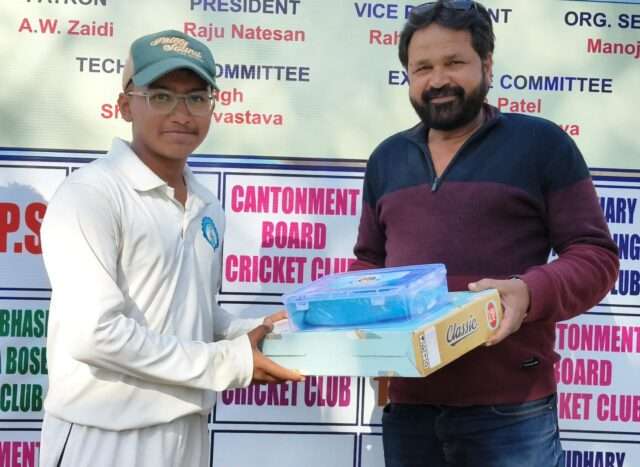 PRAYAGRAJ NEWS: आर्यन बनर्जी के हरफनमौला खेल (60 रन नाबाद, 45 गेंद, चार चौके, तीन छक्के एवं दो विकेट) के दम पर चौधरी नौनिहाल सिंह क्लब ने श्री सहायक क्लब को 24 रन से हराकर डॉ. डीएन तिवारी स्मृति अंडर-16 क्रिकेट प्रतियोगिता में पूरे अंक प्राप्त किये। विष्णु भगवान पब्लिक स्कूल मैदान पर मंगलवार को खेले गए मैच में टॉस हारकर चौधरी नौनिहाल सिंह क्लब ने 30 ओवर में 7 विकेट पर 189 रन (आर्यन बनर्जी 60 नाबाद, फरजान अली 31, कामरान अली 19, आदित्य पाठक 17, श्लोक चतुर्वेदी 2/27, दिव्यांश यादव 2/38, अभिजीत सिंह 2/45) बनाए। जवाब में श्री सहायक क्लब की टीम 30 ओवर में 8 विकेट पर 165 रन (जयेशदेश केसरवानी 78, ऋषभ 35, शिवांश पांडेय 19, आर्यन बनर्जी 2/32, मोहम्मद अली 2/33, आदित्य पाठक 2/36) ही बना सकी। आर्यन बनर्जी को मजीदिया इस्लामिया इंटर कॉलेज के कीड़ाध्यक्ष एवं स्कूली हॉकी व क्रिकेट टीम के चयनकर्ता अकील अब्बास रिजवी ने मैन ऑफ द मैच का पुरस्कार दिया।