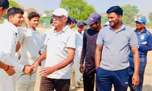 फोटो-केएस स्पोर्ट्स अंडर-14 क्रिकेट प्रतियोगिता में खिलाड़ियों से मिलते देवेश मिश्र