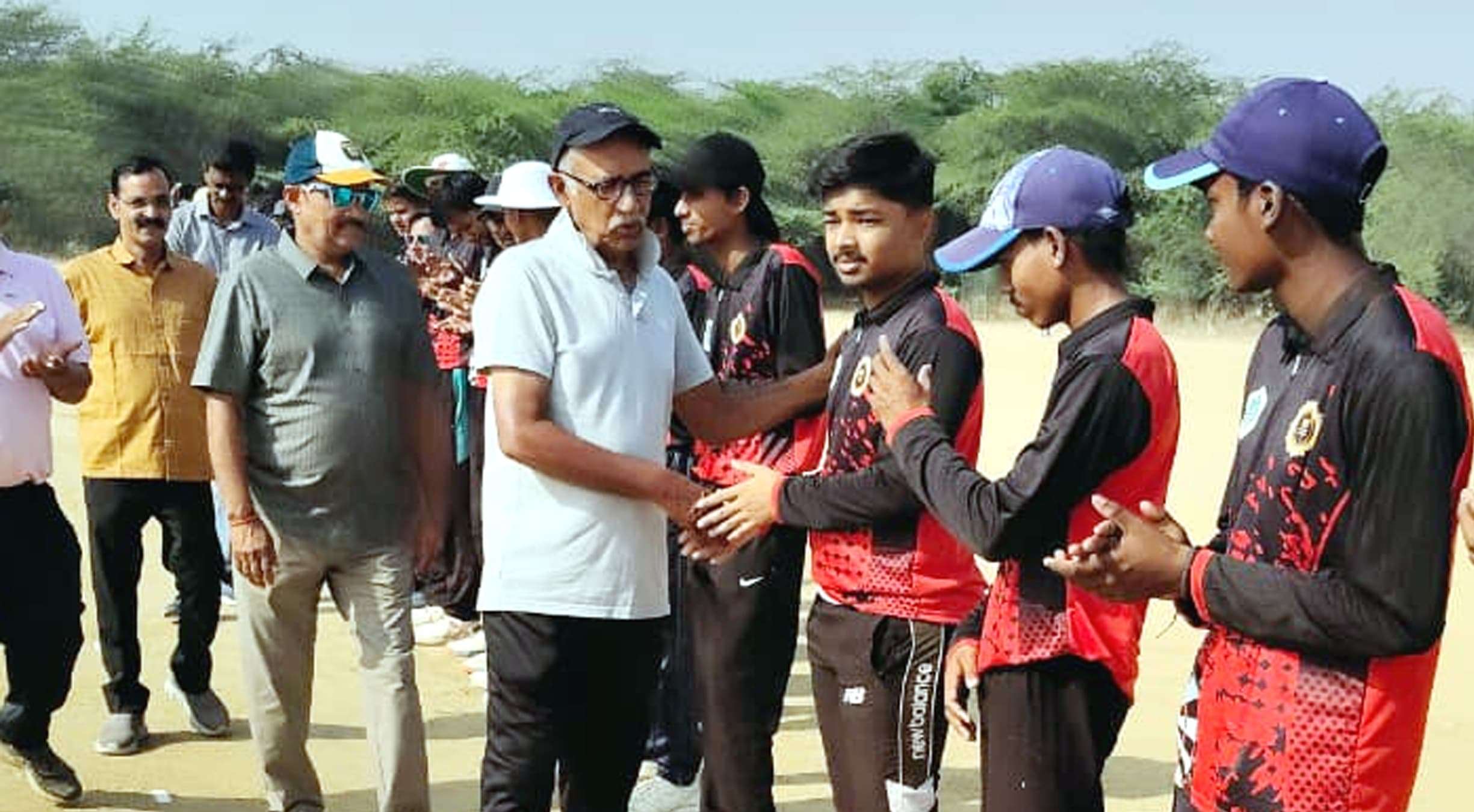फोटो – सेंट पीटर्स कप क्रिकेट प्रतियोगिता में खिलाड़ियों से मिलते इविवि के सेवानिवृत्त क्रिकेट कोच देवेश मिश्र