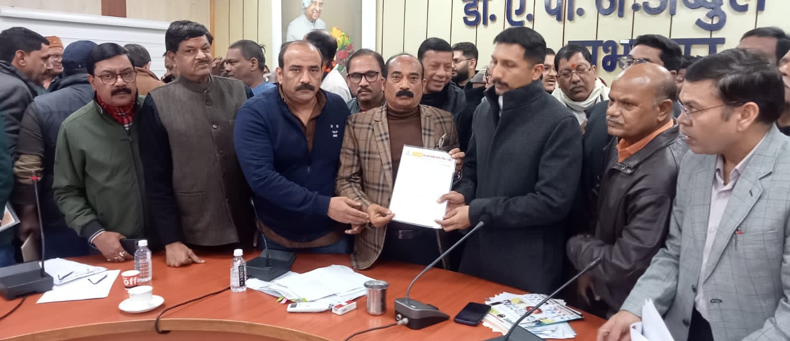 LUCKNOW NEWS: सोमवार कलेक्ट्रेट स्थित डॉ. अब्दुल कलाम सभागार में जिलाधिकारी  की अध्यक्षता में वाणिज बंधु की कैठक आयोजित हुई बैठक में उत्तर प्रदेश आदर्श व्यापार मण्डल के प्रदेश अध्यक्ष संजय गुप्ता, प्रदेश वरिष्ठ उपाध्यक्ष अविनाश त्रिपाठी, प्रदेश कोषाध्यक्ष मो.अफजल, प्रदेश उपाध्यक्ष गुरप्रीत सिंह चड्ढा, नगर महामंत्री राजीव शुक्ला, नगर महामंत्री मोहित कपूर, प्रदेश उपाध्यक्ष इक़बाल हसन, नगर उपाध्यक्ष श्यामसुंदर अग्रवाल सहित बड़ी संख्या में उत्तर प्रदेश आदर्श व्यापार मंडल के पदाधिकारी शामिल हुए