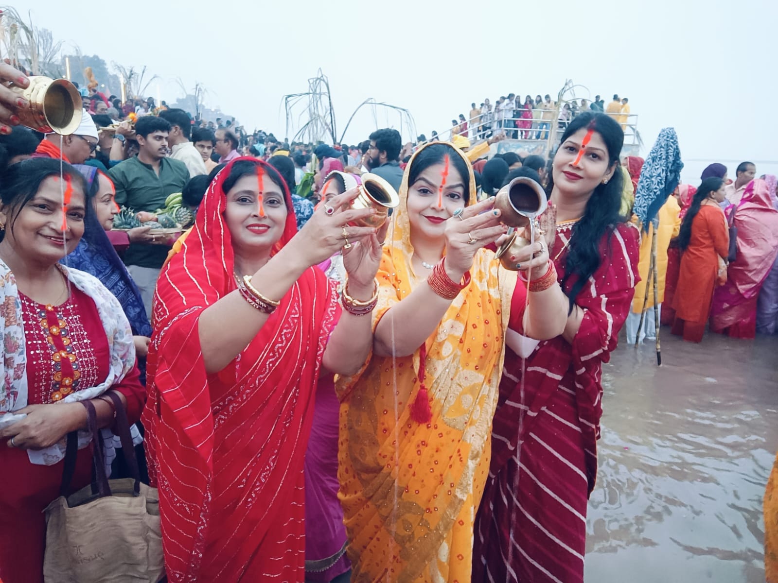 गंगा, संगम, यमुना तट के घाटों पर हजारों व्रती महिलाओं ने किया पूजन, अर्चन