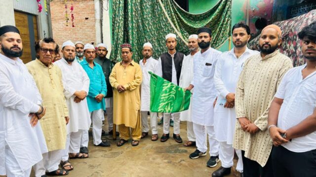 जुलूस को झंडी दिखाकर रवाना करते कमेटी के लोग।