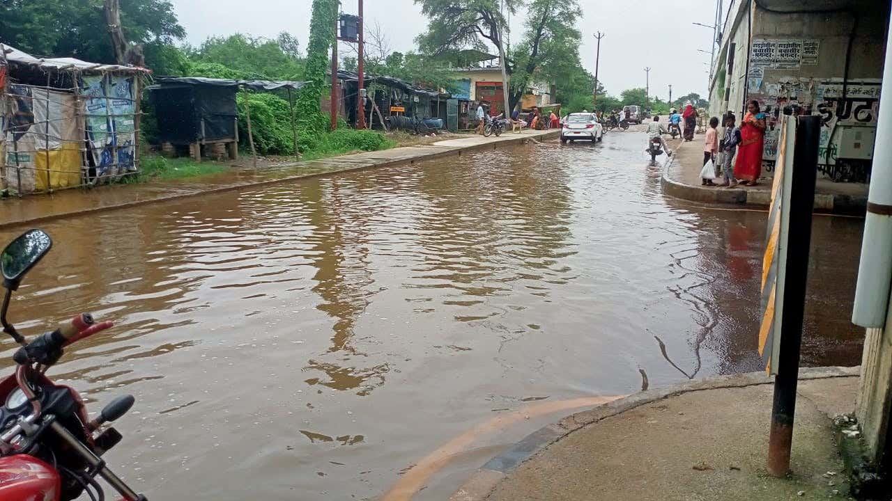 सर्विस रोड की पांच सौ मीटर तक भरा पानी