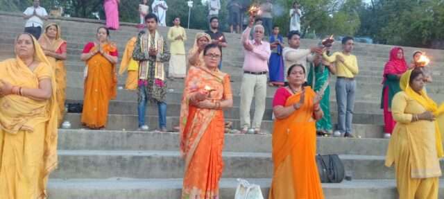 कार्यक्रम की शुरुआत घाट की साफ-सफाई के साथ हुई, जिसमें उपस्थित लोगों ने स्वच्छता का संकल्प लिया। गंगा बचाओ सेवा समिति के प्रदेश अध्यक्ष शैलेंद्र शरण ‘सिंपल’ के नेतृत्व में आयोजित इस आरती में भक्तों ने श्रद्धा और आस्था के साथ दीप प्रवाहित किए, जिससे पूरा घाट भक्तिमय वातावरण से सराबोर हो उठा। गंगा आरती के दौरान गायत्री परिवार के रवींद्र सिंह ने कहा कि मां गंगा को अविरल और निर्मल बनाए रखना हम सभी का कर्तव्य है। वहीं संत वासुदेव ने लोगों से अपील की कि गंगा नदी को प्रदूषित न करें और उसकी स्वच्छता बनाए रखने में अपना योगदान दें। कार्यक्रम के अंत में डीपीओ ज्ञान तिवारी ने उपस्थित गंगा भक्तों को स्वच्छता का संकल्प दिलाया और गंगा संरक्षण के प्रति जागरूक रहने का संदेश दिया। इस अवसर पर आचार्य रामचंद, आचार्य अखिलेश तिवारी, रामस्वरूप गुप्ता, रवींद्र सिंह, आशा त्रिपाठी, लक्ष्मी सिंह, पुष्पा गुप्ता, वंदना गुप्ता, आशीष गुप्ता, वीरेंद्र साहू, सुरेंद्र पाठक, प्रांशु रस्तोगी, विवेक, माधव दीक्षित, अहम शर्मा, सुमित, शिवम मिश्रा, आर्यन मिश्रा सहित अनेक श्रद्धालु उपस्थित रहे।
