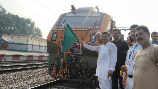 AURAIYA NEWS: जनपद के महत्वपूर्ण रेलवे स्टेशन फफूंद को एक नई ट्रेन की सौगात मिली, मंगलवार को ट्रेन अमृत भारत का स्टॉपेज दिया गया। यह ट्रेन दरभंगा जंक्शन से चलकर मदार जंक्शन के लिए जाएगी। यह ट्रेन जनपद वासियों के लिए जयपुर बालाजी जाने के लिए सबसे महत्वपूर्ण ट्रेन साबित होगी और यह ट्रेन दरभंगा से चलकर सुबह 6:30 पर फफूंद स्टेशन पर पहुंचगी। यह साप्ताहिक ट्रेन है और मदार जंक्शन (अजमेर)से दरभंगा के बीच नई ट्रेन शुरू हुई है, अमृत भारत एक्सप्रेस का दिबियापुर नगर पंचायत अध्यक्ष राघव मिश्रा द्वारा फफूंद स्टेशन पर ट्रेन के चालक दल के सदस्यों का माल्यार्पण कर पट्टिका पहनाकर स्वागत किया गया। तथा हरी झंडी दिखाकर रवाना किया गया। ट्रेन के ठहराव में भारी संख्या में लोग मौजूद थे। नवरात्रि के मौके पर रेल प्रशासन की ओर से औरैया जनपद वासियों को रेलवे की ओर से बड़ी सौगात मिलने से लोगो मे भारी खुशी की लहर देखने को मिली। अभी तक जनपद मे जयपुर और दरभंगा के लिए कोई सीधी ट्रेन नही थी मंगलवार को इस ट्रेन का ट्रायल किया गया है और 3 अक्टूबर 2025 से यह गाड़ी नियमित चला करेगी और फफूंद रेलवे स्टेशन पर इसका ठहराव रहेगा।
