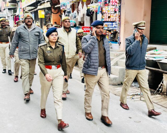 MIRZAPUR NEWS: वरिष्ठ पुलिस अधीक्षक सोमेन वर्मा के निर्देशन पर जनपद में कानून-व्यवस्था मजबूत करने के लिए पुलिस ने शुक्रवार को प्रमुख बाजारों और संवेदनशील इलाकों में फ्लैग मार्च और पैदल रूट मार्च निकाला। अपर पुलिस अधीक्षक नगर के पर्यवेक्षण में किए गए इस अभियान का उद्देश्य त्योहारों और भीड़भाड़ के समय शांति बनाए रखना है। इसी क्रम में क्षेत्राधिकारी सदर अमर बहादर एवं क्षेत्राधिकारी गायत्री यादव के नेतृत्व में थाना कछवा प्रभारी निरीक्षक अमरजीत चौहान, चौकी प्रभारी कस्बा कछवा उपनिरीक्षक विनय दुबे, चौकी प्रभारी खैरा कछवा उपनिरीक्षक महेंद्र यादव सहित पर्याप्त पुलिस बल ने कस्बा कछवा के मिश्रित आबादी वाले हिस्सों में पैदल गश्त की। अधिकारियों ने दुकानदारों व स्थानीय लोगों से बातचीत कर क्षेत्र की स्थिति का जायजा लिया। मार्च के दौरान पुलिस टीम ने बाजारों, चौराहों, धार्मिक स्थलों और अन्य सार्वजनिक जगहों पर विशेष सतर्कता बरती। लोगों से अपील की गई कि किसी भी तरह की अफवाहों पर ध्यान न दें और किसी संदिग्ध गतिविधि की जानकारी तुरंत पुलिस को दें। कछवा थाना प्रभारी निरीक्षक ने अमरजीत चौहान कहा कि जनपद में शांति-व्यवस्था बनाये रखना उनकी प्राथमिकता है और इसके लिए पुलिस हर समय मुस्तैद है।