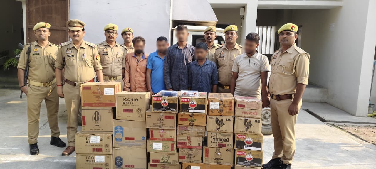 BHADOHI/GYANPUR NEWS: थाना चैरी अंतर्गत अमवाकला में कम्पोजिट शाप अंग्रेजी शराब एवं बीयर की दुकान में हुई चोरी का पुलिस ने न सिर्फ खुलासा किया बल्कि 5 शातिर चोर को भी गिरफतार कर लिया। एक वांछित चोर की पुलिस तलाश कर रही है। रविवार को पुलिस लाइन सभागार में पत्रकारों से बातचीत के दौरान एएसपी शुभम अग्रवाल ने मामले का खुलासा किया। इस दौरान एएसपी ने बताया कि ज्ञानपुर के नारायण कालोनी निवासी नरेंद्रनाथ पांडेय का उक्त स्थान पर कम्पोजिट शाप अंग्रेजी शराब एवं बीयर की दुकान है। 9/10 सितंबर की रात्रि लगभग एक बजें दुकान का ताला तोड़कर 44 पेटी बीयर एवं 32 पेटी अंग्रेजी शराब साथ में काउंटर से नकद राशि चोर उठा ले गए थे। दुकान में सीसीटीवी कैमरा भी लगा हुआ था। चोर उसका डीवीआर भी उठा कर ले गए थे। उन्होंने बताया कि उक्त सूचना पर थाना स्थानीय पर चोरों के विरुद्ध बीएनएस की धारा 305(1), 331(4) का अभियोग पंजीकृत कर विवेचनात्मक कार्रवाई प्रचलित की गई। आज उपनिरीक्षक राजेंद्र प्रसाद ओझा, गौतम कुमार, मुख्य आरक्षी अबरार अहमद, कांस्टेबल अरविंद कुमार, सुरेश कुमार, विकास जायसवाल व उत्कर्ष द्वारा रात्री गस्त में कंधिया फाटक के पास मौजूद थें कि मुखबिर द्वारा सूचना दिया कि अंग्रेजी शराब के ठेके के शटर को तोड़कर शराब व बीयर की चोरी करने वाले चोर, चोरी की गई शराब व बीयर को बेचने की फिराक में ग्राम कछुआ बोझ की तरफ से कंधिया फाटक की तरफ आ रहे हैं। जो भदोही की तरफ जाने की फिराक में हैं। इस सूचना पर कछुआ बोझ रोड पर मेन रोड से करीब 100 मीटर आगे बढ़कर आने वाले वाहन का इंतजार करने के दौरान संदिग्ध पिकअप वाहन वाहन को रोकवाया। गाड़ी रूकते ही उसमें बैठे व्यक्ति भागना चाहें। परंतु वे मौके पर ही पकड़ लिए गए। एएसपी ने बताया कि पकड़े गए व्यक्ति का नाम संजय पाल पुत्र मंगला प्रसाद पाल निवासी ग्राम डुढ़वाधर्मपुर कोतवाली भदोही, सनी पाल पुत्र रामनरायन पाल निवासी ग्राम कल्लीपुर थाना मिर्जामुराद जिला वाराणसी, अमन कुमार यादव पुत्र महाबली यादव निवासी बरमोहनी कोतवाली भदोही, सोहन यादव पुत्र लवलीन यादव निवासी पिपरीस अधारपुर कोतवाली भदोही व आलोक पाल पुत्र सरजू प्रसाद पाल निवासी ग्राम सिंधौरवा थाना जंसा जनपद वाराणसी तथा मूल पता ग्राम देवरीकाट थाना घोरावल जनपद सोनभद्र है। सभी के पास से 26 हजार रुपए नगद, 18 पेटी अंग्रेजी शराब कुल 139.38 लीटर (कीमत करीब 1,80,000 रुपए) व 10 पेटी बीयर कुल 120 लीटर (कीमत करीब 30,000 रुपए) तथा एक बोलेरो मैक्स पिकप बिना नम्बर प्लेट के चार मोबाइल बरामद किया गया। मुकदमे में धाराओं की बढ़ोत्तरी की गई है। मामले में वांछित अभियुक्त दया सरोज पुत्र आशाराम सरोज उर्फ लालसाहब निवासी ग्राम अस्ती कोतवाली भदोही की तलाश की जा रही है।