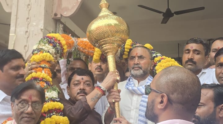 पूर्व एमएलसी को 51 किलो के फूलों की मांग व गदा देकर नगर पंचायत अध्यक्ष ने किया भव्य स्वागत