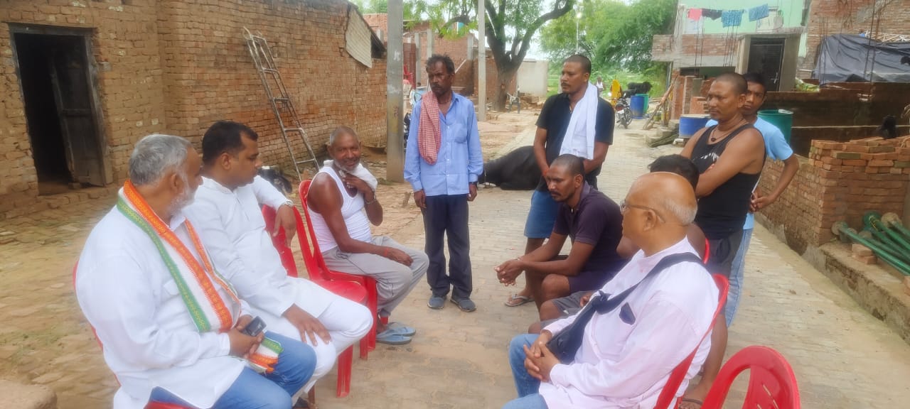 कांग्रेस कमेटी पहुंची प्रधान शंभू दयाल के घर