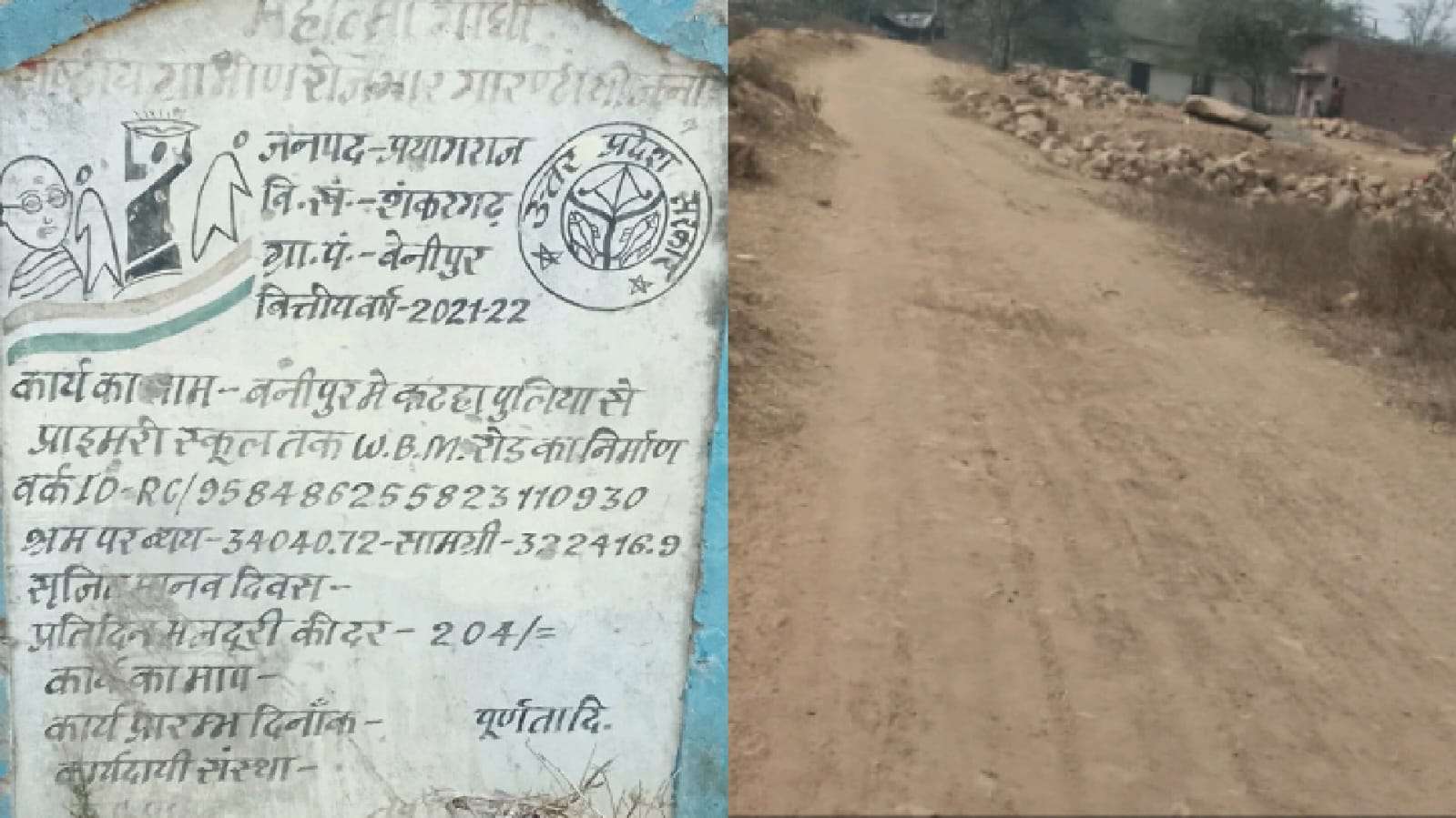 शंकरगढ़,प्रयागराज। यमुनानगर क्षेत्र की बारा तहसील के शंकरगढ़ ब्लाक अंतर्गत ग्राम पंचायत बेनीपुर की कहानी विकास के दावों पर करारा तमाचा मारती दिखाई देती है। यहां महात्मा गांधी राष्ट्रीय ग्रामीण रोजगार गारंटी योजना के तहत सड़क निर्माण का बोर्ड तो वर्षों पहले गाड़ दिया गया, लाखों रुपये खर्च भी दिखा दिए गए, लेकिन हकीकत यह है कि आज तक सड़क नहीं बनी। कीचड़, गड्ढे और जंगल के बीच रहने को मजबूर गरीब ग्रामीण आज भी उसी रास्ते से गुजर रहे हैं, जहां बरसात में निकलना नामुमकिन हो जाता है। ग्राम पंचायत बेनीपुर में कटहा पुलिया से प्राइमरी स्कूल तक डब्ल्यू बी एम रोड निर्माण का कार्य दर्शाया गया है। बोर्ड पर दर्ज विवरण के अनुसार इस कार्य में श्रम मद में चौतीस लाख चार हजार बहत्तर रुपये और सामग्री मद में तीन लाख बाईस हजार चार सौ सोलह रुपये खर्च दिखाया गया है। मजदूरी की दर प्रतिदिन दो सौ चार रुपये लिखी गई है। इतना बड़ा खर्च दिखाने के बावजूद जमीन पर एक गज भी सड़क दिखाई नहीं देती। सबसे हैरान करने वाली बात यह है कि बोर्ड पर कार्य प्रारंभ होने की तारीख नहीं लिखी गई, कार्य पूरा होने की तारीख नहीं लिखी गई, कार्यदायी संस्था का नाम नहीं लिखा गया, यहां तक कि पूरा कार्य विवरण भी अधूरा छोड़ दिया गया। यानी कि बोर्ड गाड़कर खानापूर्ति कर दी गई, लेकिन काम कब हुआ, किसने किया, किसे पैसा मिला — यह सब जानकारी गायब कर दी गई। ग्रामीणों का कहना है कि जिस दिन बोर्ड लगा था, उस दिन लोगों को लगा था कि अब गांव की किस्मत बदलेगी। बच्चों को स्कूल जाने में दिक्कत नहीं होगी, बीमार को अस्पताल ले जाना आसान होगा, मजदूरों को शहर तक जाने में परेशानी नहीं होगी। लेकिन साल बीतते गए और सड़क का सपना सपना ही रह गया। आज हालत यह है कि जिनके पास पैसा है, जिनके पास साधन है, वह पक्की सड़क तक पहुंच जाते हैं, लेकिन जो गरीब हैं, जो मजदूरी करके पेट पालते हैं, जो जंगल के किनारे झोपड़ी बनाकर रहते हैं, उनके लिए आज भी रास्ता कीचड़ और धूल से भरा है। बरसात के दिनों में यह रास्ता दलदल बन जाता है और स्कूली बच्चों का भविष्य उसी कीचड़ में फिसलता दिखाई देता है। छोटे-छोटे बच्चे किताब लेकर निकलते हैं, लेकिन कई बार स्कूल तक पहुंचना भी मुश्किल हो जाता है। गांव के मजदूर और गरीब परिवारों का कहना है कि सड़क बन जाती तो उनकी जिंदगी बदल जाती, लेकिन यहां तो बोर्ड लगाकर ही विकास दिखा दिया गया। मीडिया द्वारा जब गांव में जाकर जानकारी ली गई तो कई ग्रामीण कैमरे पर आने से डरते दिखे। लोगों ने साफ कहा कि यहां ऐसा माहौल है कि कोई खुलकर बोलना नहीं चाहता, लेकिन दर्द सबके दिल में है। ग्रामीणों ने यह भी कहा कि अगर कोई सक्षम अधिकारी खुद गांव आकर देख ले, तो उसे पता चल जाएगा कि लाखों रुपये खर्च दिखाने क