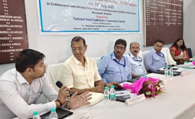 इस दौरान एनएसआइसी के सीनियर ब्रांच मैनेजर जेपी सिंह ने कहा कि डिजिटल कॉमर्स के लिए ओपेन नेटवर्क (ओएनडीसी) भारत सरकार द्वारा समर्थित एक तकनीकी अवसंरचना है। यह एक नेटवर्क केंद्रीत मॉडल है। जहां खरीद और विक्रेता किसी भी प्लेटफ़ॉर्म व एप्लिकेशन का उपयोग किए गए बिना लेन-देन कर सकते हैं। बशर्ते प्लेटफॉर्म व एप्लिकेशन इस खुले नेटवर्क से जुड़े हों। उन्होंने कहा कि सरल शब्दों में ओएनडीसी एक डिजिटल रोड नेटवर्क की तरह है। कार्यशाला में कालीन निर्माण में प्रयुक्त होने वाले कच्चे माल पर लोन उपलब्ध कराएं जाने पर चर्चा की गई। कार्यशाला के दौरान उद्यम पंजीकरण संख्या के माध्यम से उद्यमियों ने अपना पंजीकरण कराकर लाभ प्राप्त किया। उपस्थित अधिकारियों से संबंधित प्रश्न पूछकर जानकारी हासिल की। इस मौके पर सहायक आयुक्त उद्योग अशोक कुमार, एकमा मानद सचिव पीयूष बरनवाल, एक्सिस बैंक के वाइस प्रेसिडेंट सुनील दुबे, डिप्टी जनरल मैनेजर एनएसआइसी तुफैल अहमद, चीफ मैनेजर एफ एंड ए प्रदीप कुमार, रविकांत कालीन निर्यातक जयप्रकाश गुप्ता, हाजी अब्दुल सत्तार अंसारी, राजकुमार बोधरा, सुजीत जायसवाल, अमित मौर्य व सादिक अंसारी आदि प्रमुख रूप से मौजूद रहें।