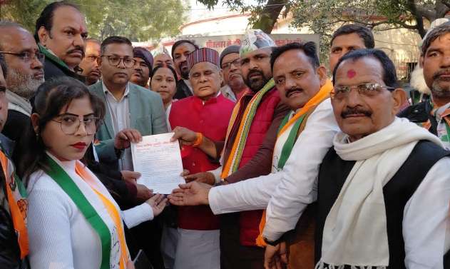 काशी में मंदिर तोड़े जाने के विरोध में कांग्रेस का प्रदर्शन, राज्यपाल के नाम सौंपा ज्ञापन