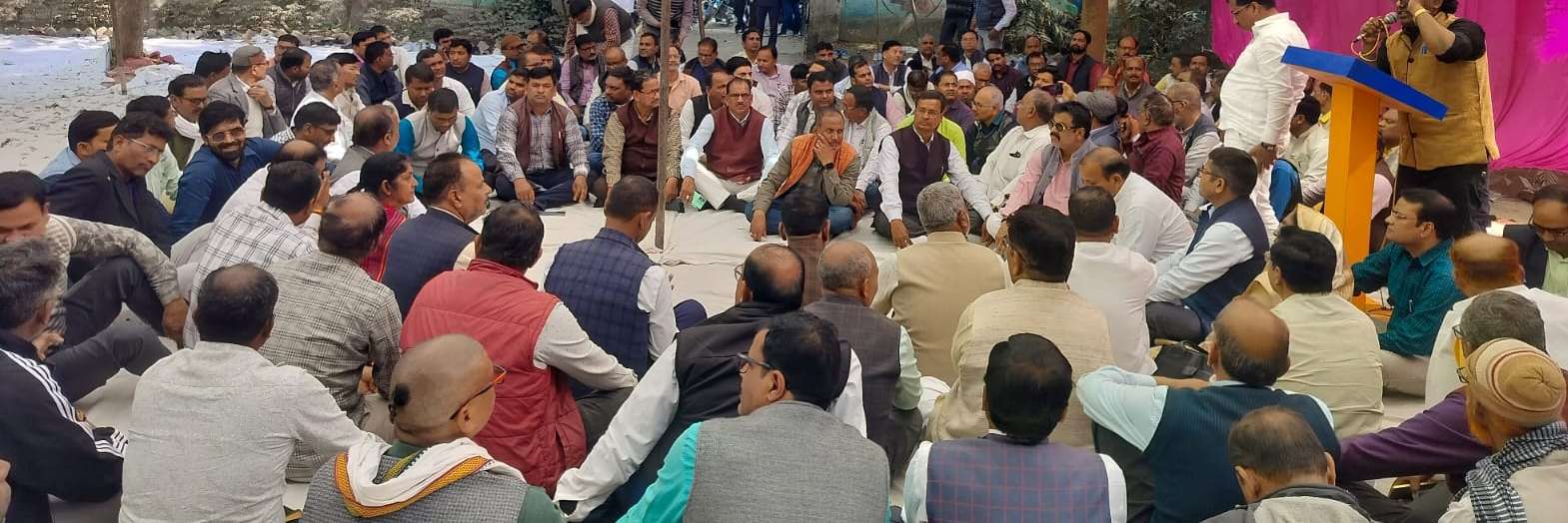 कुशीनगर में टीईटी अनिवार्यता से छूट की मांग को लेकर शिक्षकों का bsa कार्यालय पर धरना