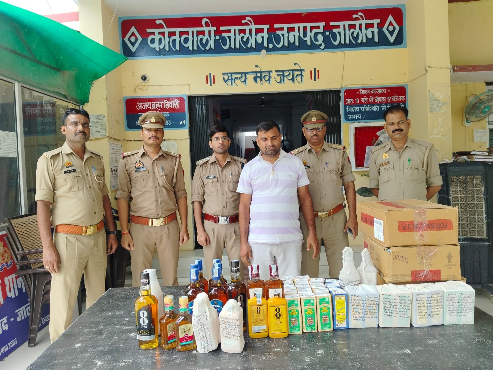 JALAUN NEWS: कोतवाली जालौन पुलिस व आबकारी की संयुक्त टीम द्वारा एक अभियुक्त इन्द्रजीत सिंह पुत्र सुरेन्द्र सिंह निवासी ग्राम कुठौन्दा बुजुर्ग कोतवाली जालौन को गिरफ्तार कर उसके कब्जे से 13 हाफ बोतले अंग्रेजी शराब, 8 क्वार्टर अंग्रेजी शराब, 159 क्वार्टर देशी शराब(कीमत लगभग एक लाख पांच हजार) बरामद की गयी। जिसे सुसंगत धाराओं में मुकदमा दर्ज कर जेल भेज दिया गया।