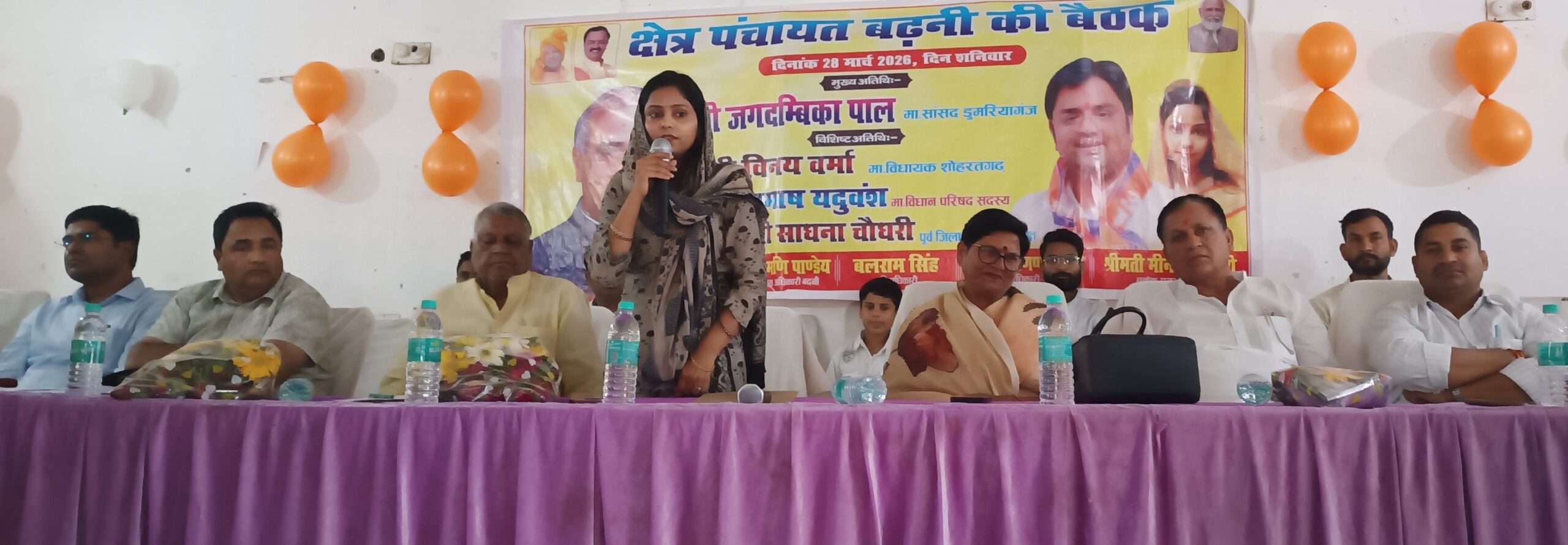 SIDHARTHNAGAR NEWS: क्षेत्र पंचायत बढ़नी की महत्वपूर्ण बैठक शनिवार को दोपहर 12:30 बजे ब्लॉक मुख्यालय सभागार में आयोजित की गई। बैठक की अध्यक्षता ब्लॉक प्रमुख मीनाक्षी चौधरी ने की। बैठक में विभिन्न विभागों के अधिकारियों, जनप्रतिनिधियों, प्रधानों एवं क्षेत्र पंचायत सदस्यों की उपस्थिति में क्षेत्र के विकास कार्यों, योजनाओं के क्रियान्वयन और जनसमस्याओं पर विस्तार से चर्चा की गई। बैठक में खंड विकास अधिकारी (बीडीओ) अनिशि मणि पाण्डेय, पूर्व जिला पंचायत अध्यक्ष साधना चौधरी, सांसद प्रतिनिधि नर्वदेश्वर मणि त्रिपाठी तथा सूर्य प्रकाश पाण्डेय सहित अन्य जनप्रतिनिधि मौजूद रहे।जनप्रतिनिधियों ने क्षेत्र में चल रही योजनाओं की प्रगति की समीक्षा करते हुए संबंधित अधिकारियों को समयबद्ध एवं गुणवत्तापूर्ण कार्य सुनिश्चित करने के निर्देश दिए। बैठक के दौरान लगभग 2602.34 लाख रुपये की विभिन्न विकास योजनाओं के प्रस्तावों एवं क्रियान्वयन पर चर्चा की गई। इनमें सड़क, पेयजल, सिंचाई, पंचायत भवन निर्माण, नाली एवं अन्य आधारभूत सुविधाओं से संबंधित कार्य प्रमुख रहे। अधिकारियों ने योजनाओं की वर्तमान स्थिति की जानकारी दी और लंबित कार्यों को शीघ्र पूर्ण करने का आश्वासन दिया। पशुपालन विभाग की ओर से 1962 पशुपालक एम्बुलेंस सेवा के संचालन एवं उससे मिलने वाले लाभों की जानकारी दी गई। डाक्टर राकेश कुमार गुप्ता ने बताया कि यह सेवा पशुओं के इलाज के लिए अत्यंत उपयोगी है और ग्रामीण क्षेत्रों में पशुपालकों को त्वरित सुविधा प्रदान कर रही है। जल निगम के अवर अभियंता अनुराग वर्मा ने पेयजल योजनाओं की प्रगति रिपोर्ट प्रस्तुत की। उन्होंने बताया कि क्षेत्र में स्वच्छ पेयजल आपूर्ति सुनिश्चित करने के लिए पाइपलाइन विस्तार एवं मरम्मत कार्य तेजी से किए जा रहे हैं। वहीं सिंचाई विभाग के अवर अभियंता संतोष कुमार गुप्ता ने किसानों के लिए नहरों की सफाई एवं जल आपूर्ति व्यवस्था को दुरुस्त करने की जानकारी दी। बैठक में समाज कल्याण विभाग द्वारा वृद्धा, विधवा एवं दिव्यांग पेंशन योजनाओं की विस्तृत जानकारी दी गई। अधिकारियों ने बताया कि पात्र लाभार्थियों को समय पर पेंशन उपलब्ध कराई जा रही है तथा जिन लोगों का नाम अभी तक सूची में शामिल नहीं है, वे निर्धारित प्रक्रिया के तहत आवेदन कर लाभ प्राप्त कर सकते हैं। पंचायत विभाग के एडीओ रामविलास तथा एकाउंटेंट महेंद्र कुमार ने पंचायतों में चल रहे विकास कार्यों के वित्तीय पहलुओं और बजट व्यय की स्थिति पर प्रकाश डाला। उन्होंने बताया कि सभी ग्राम पंचायतों में पारदर्शिता के साथ कार्य कराए जा रहे हैं और योजनाओं का लाभ पात्र लाभार्थियों तक पहुंचाया जा रहा है। इस दौरान प्रधानों एवं क्षेत्र पंचायत सदस्यों 