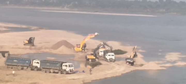 हेमनपुरा के गाटा संख्या 240 खंड-1 में धड़ल्ले से चल रहा अवैध मौरंग खनन, प्रशासन मौन