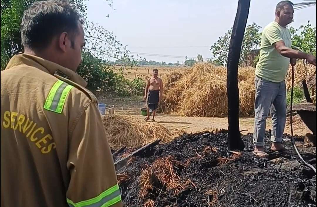अचानक लगी आग से झोपड़ी, दुकान और गेहूं का डांठ व पुआल जलकर खाक
