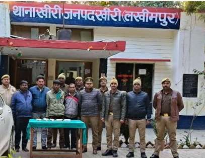 LAKHIMPUR KHERI NEWS: खीरी पुलिस ने लूट,चोरी और जानलेवा फायरिंग की घटनाओं का खुलासा किया है। पुलिस ने इन मामलों में चार शातिर अभियुक्तों को गिरफ्तार किया है। यह कार्रवाई पुलिस अधीक्षक खीरी के निर्देश और थानाध्यक्ष खीरी निराला तिवारी के नेतृत्व में की गई।गिरफ्तार अभियुक्तों के पास से तीन अवैध तमंचे (315 बोर), एक जिंदा कारतूस, दो खोखा कारतूस, जेवरात (पायल और सिक्का) और 8,400 रुपये नकद बरामद किए गए हैं। इसके अतिरिक्त, वारदात में इस्तेमाल की गई एक डिजायर कार (संख्या UP32 JE 5609) भी जब्त की गई, जिसे मोटर वाहन अधिनियम की धारा 207 के तहत सीज कर दिया गया है। गिरफ्तार किए गए अभियुक्तों की पहचान पंकज पुत्र माताप्रसाद (निवासी बेलवा डिंगरा, थाना लहरपुर, सीतापुर), सुरेन्द्र कुमार उर्फ कल्लू पुत्र सोबरनलाल (निवासी देवीसहायपुरवा, थाना शारदानगर), सरवन पुत्र दीनबन्धु (निवासी लोनियपुरवा) और भानू सिंह पुत्र भगवानबक्श सिंह (निवासी चाऊपुर पड़री, थाना व जिला खीरी) के रूप में हुई है। पुलिस के अनुसार, इन अभियुक्तों के खिलाफ थाना खीरी में भारतीय न्याय संहिता (बीएनएस) और आर्म्स एक्ट की विभिन्न धाराओं के तहत कई मुकदमे दर्ज हैं। अभियुक्त पंकज का पहले से भी आपराधिक इतिहास बताया जा रहा है। पुलिस ने सभी अभियुक्तों के विरुद्ध आवश्यक कानूनी कार्रवाई पूरी कर उन्हें न्यायालय भेज दिया है। मामले में आगे की जांच जारी है।