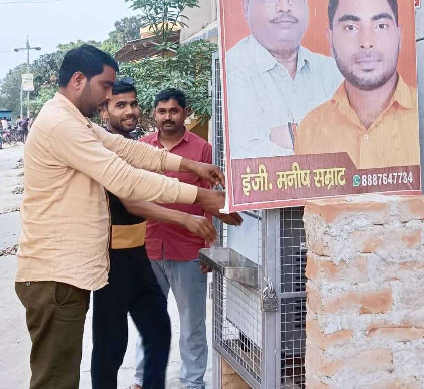 गर्मी में राहगीरों और ग्रामीणों को राहत देने के लिए लगाया गया वाटर कूलर