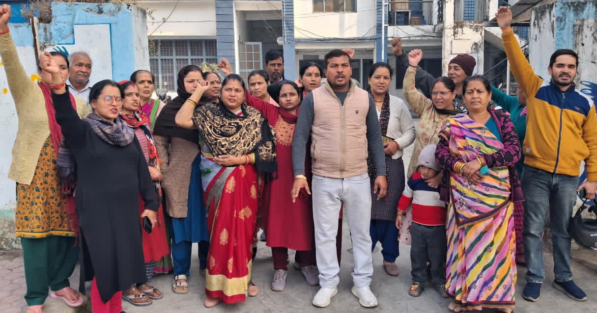 UTTRAKHAND/HALDWANI NEWS: (राजकुमार केसरवानी) गुप्ता कम्पाउन्ड समेत राजपुरा के कुछ हिस्सों में व्याप्त पेयजल संकट से ठंड के मौसम में लोगों का पारा गर्म हो गया युवा नेता हेमन्त साहू की अगवाई जलसंस्थान दफ्तर में जोरदार नारेबाजी करते जमकर प्रदर्शन किया। इस दौरान महिलाओं ने विभागीय अधिकारियों का घेराव कर जमकर खारी खोटी सुनाई। युवा नेता हेमंत साहू का कहना है गुप्ता कम्पाउन्ड समेत राजपुरा के कुछ हिस्सों में पिछले एक माह से पेयजल संकट बना है रानीबाग वाली लाइन तिकोनिया चौराहे से कही पर टूट गई हैं जिसे खोजने में विभाग विफल साबित हुआ जिस वजह लोगों को पानी की बूंद बूंद के लिए भटकना पड़ रहा है साहू ने चेतवानी दी है जल्द टूटी लाईन खोजकर व्यवस्था ठीक नहीं की गई तो उग्र आन्दोलन किया जायेगा। प्रदर्शन में राजकुमार केसरवानी किशोरी लाल सुनीता देवी पोसखी मुस्कान नीलाम अर्चना गुप्ता जया सविता खन्ना राजकुमारी देवी रजनी गुप्ता मदन बाल्मीकि दया गुप्ता मुन्नी गुप्ता समेत तमाम लोग थे। विभाग द्वारा टैंकरों से पानी वितरण करवाया गया।