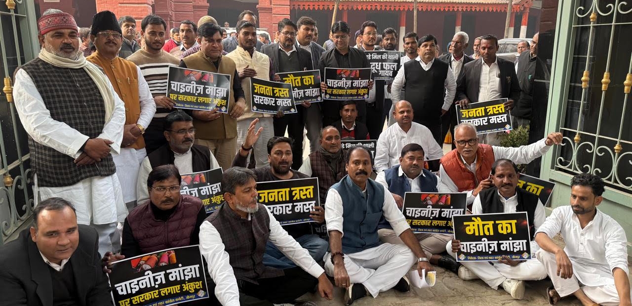 चाइनीज मंझे और मिड डे मिल में अनियमितता के खिलाफ कांग्रेस का प्रदर्शन