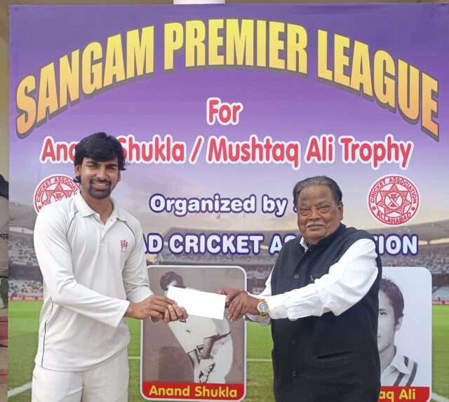 PRAYAGRAJ NEWS: चीफ जस्टिस एसके वर्मा एकादश ने जस्टिस एसएन द्विवेदी एकादश को 6 विकेट से हराकर आनंद शुक्ला एवं मुश्ताक अली ट्रॉफी के लिए खेली जा रही संगम प्रीमियर लीग क्रिकेट प्रतियोगिता में पूरे अंक प्राप्त किये। केपी कॉलेज मैदान पर शुक्रवार को खेले गए मैच में जस्टिस एसएन द्विवेदी एकादश की टीम टॉस जीतकर पहले खेलते हुए 19.1 ओवर में मात्र 66 रन (सुब्रत प्रसाद तिवारी 30, राहुल राजपाल 14, सक्षम अवस्थी 3/08, संदीप पटेल 3/21, प्रथम मिश्रा 2/09, आदित्य यादव 1/28) बनाए। जवाब में चीफ जस्टिस एसके वर्मा एकादश ने 16.2 ओवर में चार विकेट पर 68 रन (आदित्य तिवारी 22 नाबाद, मयंक दुबे 17 नाबाद, विशाल यादव 3/29, हर्ष शर्मा 1/19) बना लिए। सक्षम अवस्थी को निशीथ वर्मा ने मैन ऑफ द मैच का पुरस्कार दिया।