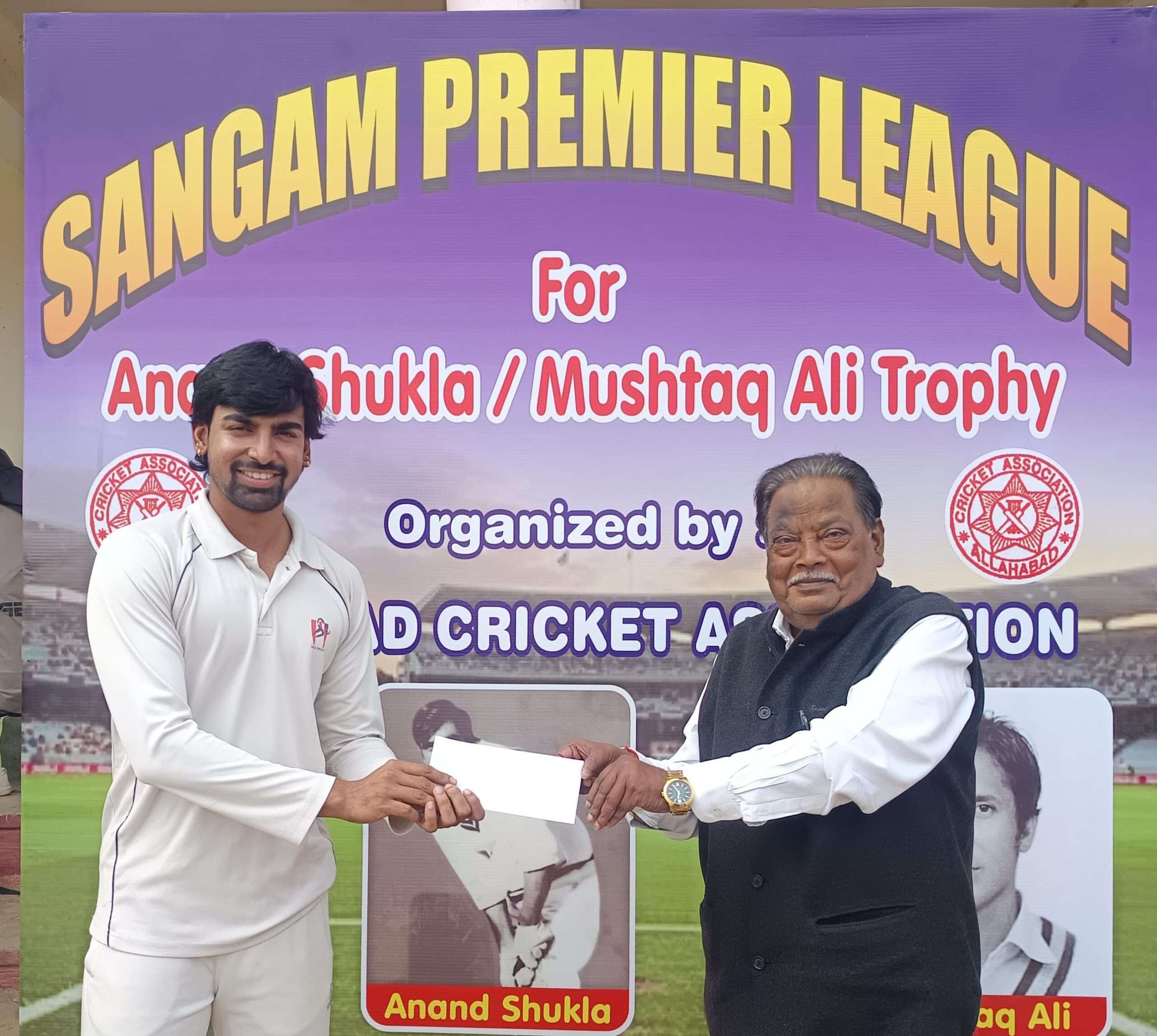 फोटो-सक्षम अवस्थी को मैन ऑफ द मैच देते निशीथ वर्मा