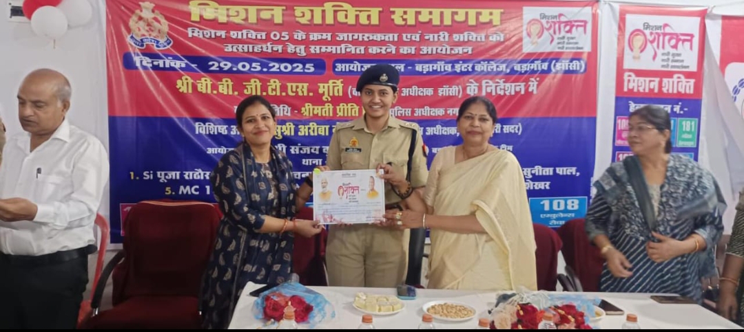 JHANSI NEWS: उत्तर प्रदेश सरकार द्वारा चलाए जा रहे मिशन शक्ति अभियान के तहत वरिष्ठ पुलिस अधीक्षक झांसी के दिशा निर्देशन में बड़ागाँव इंटर कॉलेज बड़ागांव में राज्य महिला आयोग की सदस्य अनुपमा सिंह लोधी, सहायक पुलिस अधीक्षक अरीबा नोमान,बड़ागांव थाना प्रभारी संजय गुप्ता, मिशन शक्ति प्रभारी बड़ागांव एस आई अनुज कुमार, एस आई पूजा राठौर,महिला कांस्टेबल रचना चाहर, सुनीता देवी, नीतू सिंह, सहित आदि उपस्थित रहें। अनुपमा सिंह लोधी ने बताया कि महिलाओं को नारी सुरक्षा, स्वावलंबन एवं सशक्तिकरण की दिशा में मिशन शक्ति अभियान की सार्थकता से अवगत कराया गया। साथ ही महिलाओं के प्रति होने वाले अपराधों से बचाव, साइबर अपराध से सुरक्षा तथा शासन की विभिन्न जनकल्याणकारी योजनाओं एवं हेल्पलाइन नंबरों की विस्तृत जानकारी भी प्रदान की गई साथ ही विद्यालय की चार मेधावी छात्राओं, छह स्पोर्ट्स की छात्राओं, आठ आंगनबाड़ी कार्यकत्री, छह आशाओं को प्रशस्ति पत्र देकर सम्मानित किया गया।