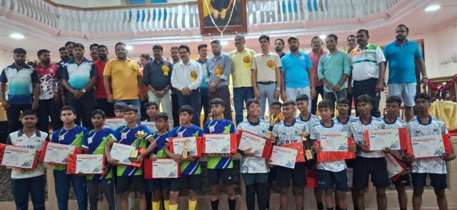 प्रयागराज। मुंशी काली प्रसाद कुलभास्कर अंडर- 14 वर्ष हॉकी प्रतियोगिता का फाइनल केपी इंटर कॉलेज में था लेकिन अत्यधिक बारिश होने के कारण मैच नहीं हुआ और फाइनल में पहुंचने वाली केपी इंटर कॉलेज और मस्जिदिया इस्लामिया इंटर कॉलेज को संयुक्त रूप से विजेता घोषित किया गया। पुरस्कार वितरण समारोह केपी कॉलेज के सभागार में हुआ जिसमें मुख्य अतिथि उप्र हॉकी संघ के संयुक्त सचिव गोपाल नारायण मिश्रा थे जबकि अध्यक्षता केपी इंटर कॉलेज के संयोजक प्रधानाचार्य डॉ योगेंद्र सिंह ने किया। इस अवसर पर मजीदिया इस्लामिया इंटर कॉलेज एवं केपी इंटर कॉलेज के खिलाड़ियों को प्रमाण पत्र तथा पुरस्कार देकर सम्मानित किया गया। जिन टीमों ने प्रतिभाग किया था उन सभी को प्रतिभागिता प्रमाण पत्र दिया गया। मुख्य अतिथि गोपाल नारायण मिश्र ने कहा की उत्तर प्रदेश हॉकी खिलाड़ियों के हर सुविधा के लिए तत्पर है और छोटी-छोटी प्रतियोगिताओं से ही बड़े खिलाड़ी बनाए जा सकते हैं। प्रधानाचार्य डॉ योगेंद्र सिंह ने पुरस्कार वितरण का संचालन और सभी का स्वागत उमेश खरे ने किया। इस अवसर पर अनिल विक्रम सिंह,राजेश वर्मा, गोलू, शरद ,आरसी परवीन आजम आदि लोग उपस्थित थे। प्रतियोगिता को सफल बनाने में ऑफिशियल राहुल यादव, दिनेश, नवीन शर्मा, नितेश मौर्य, जमशेद, क्षितिज, शुभम, शुभम भारती का सहयोग रहा। प्रतियोगिता के आयोजन मे सनी पांडे, सुधांशु गुप्ता, रशीद अहमद, आरसी, परवीन, ऋषि कुमार, अर्जुन प्रसाद का सहयोग था।