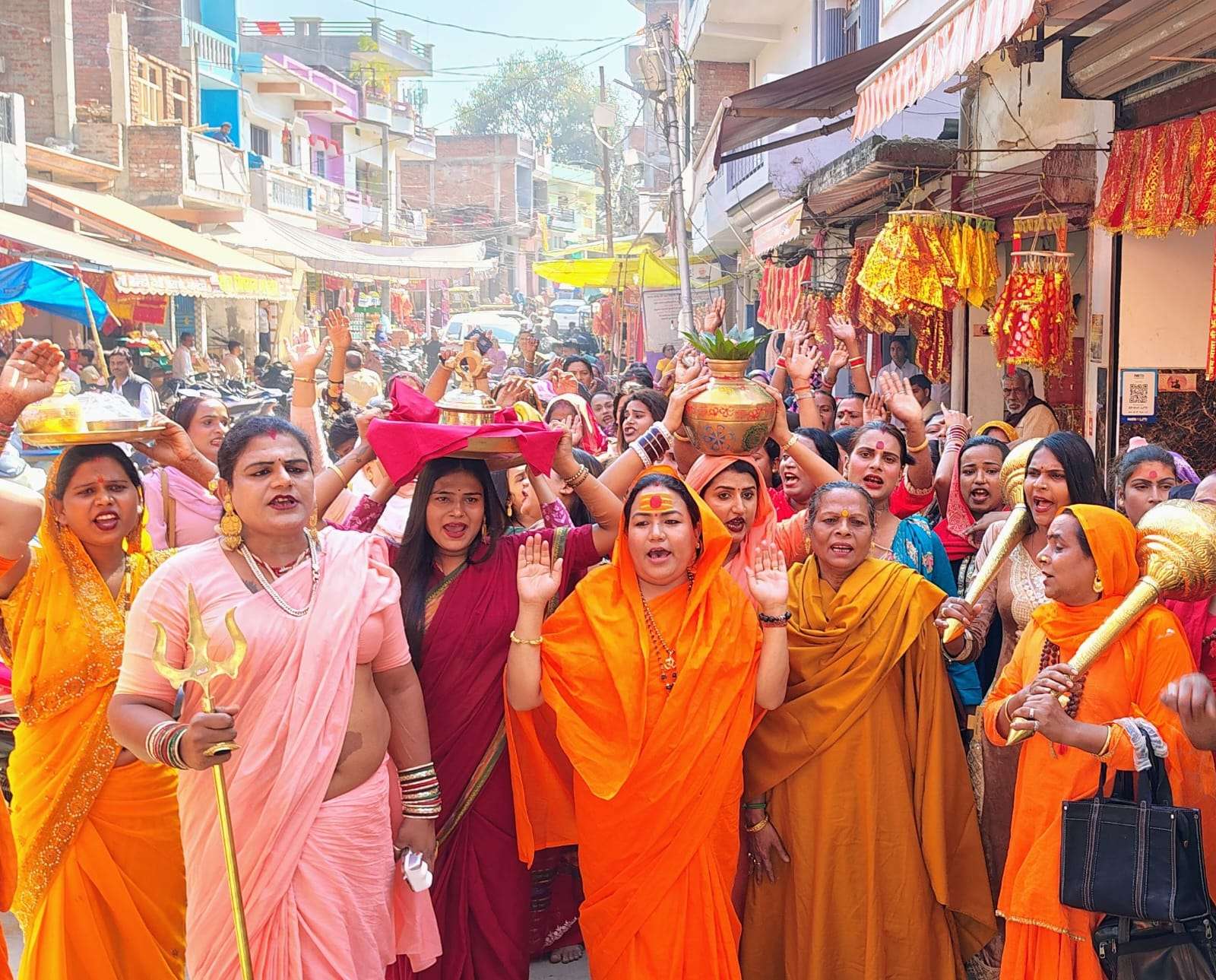 प्रतापगढ़ : सनातनी किन्नर अखाड़ा के सदस्यों ने अपने आचार्य महामंडलेश्वर कौशल्या नंद गिरी जी महाराज के नेतृत्व में प्रतापगढ़ की जनता की सुख-समृद्धि, शांति और कल्याण की मंगल कामना के उद्देश्य से बेल्हा देवी मंदिर में भव्य पूजन कार्यक्रम का आयोजन किया। इस दौरान देवी माँ को घण्टा अर्पित किया गया तथा विधि-विधान से पूजन एवं अर्चन संपन्न हुआ। पूजन कार्यक्रम वैदिक मंत्रोच्चार और पारंपरिक धार्मिक रीति-रिवाजों के साथ श्रद्धा और भक्ति के वातावरण में सम्पन्न हुआ। अखाड़े के सदस्यों ने माँ बेल्हा से क्षेत्र में अमन-चैन, सामाजिक सौहार्द और खुशहाली बनाए रखने की प्रार्थना की। यह आयोजन सनातन संस्कृति के संरक्षण और सामाजिक समरसता का सशक्त संदेश बना। इस धार्मिक अनुष्ठान में सनातनी किन्नर अखाड़े के सैकड़ों सदस्य शामिल हुए। कार्यक्रम में प्रमुख रूप से प्रतापगढ़ की नायक नरगिस माई, महामंडलेश्वर संजना नंद गिरी, महंत संध्या नंद गिरी, नैना नंद गिरी, पारो नायक, पलक, रानी, राधिका, सुनयना, राखी, पायल, कंगना पाण्डेय, आरती, सुषमा, महक सहित अनेक सदस्य उपस्थित रहे। इस अवसर पर आचार्य महामंडलेश्वर कौशल्या नंद गिरी जी महाराज ने कहा कि सनातनी किन्नर अखाड़ा समाज में धर्म, सेवा और भाईचारे की भावना को सुदृढ़ करने का कार्य कर रहा है। कार्यक्रम के अंत में प्रसाद वितरण किया गया।