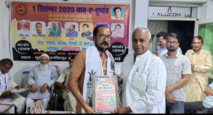 JALAUN NEWS: “याद-ए-दुष्यंत” इप्टा इकाई द्वारा प्रस्तुत जनगीत से शुरू हुए कार्यक्रम में जनवादी कविताओं की गूँज देर तक सुनाई देती रही। उस्ताद शाइर नासिर अली नदीम साहब की अध्यक्षता में हुए इस कार्यक्रम में मध्यप्रदेश मिहोना से पधारे कवि महेन्द्र मिहोनवी जी,कृपाराम कृपालु जी, कवयित्री इंदु विवेक जी, कवयित्री शिखा गर्ग,जी भाई पुष्पेंद्र पुष्प,जी मेरे द्वारा कार्यक्रम का संचालन इस अवसर पर नगर के वरिष्ठ पत्रकार, समाजसेवी और छात्र छात्राएं बड़ी संख्या में सुधी श्रोता जन उपस्थित रहे। जिन्होंने सभी को भरपूर सुना इप्टा की पूरी टीम को इस अनूठे आयोजन के लिए किया गया है।