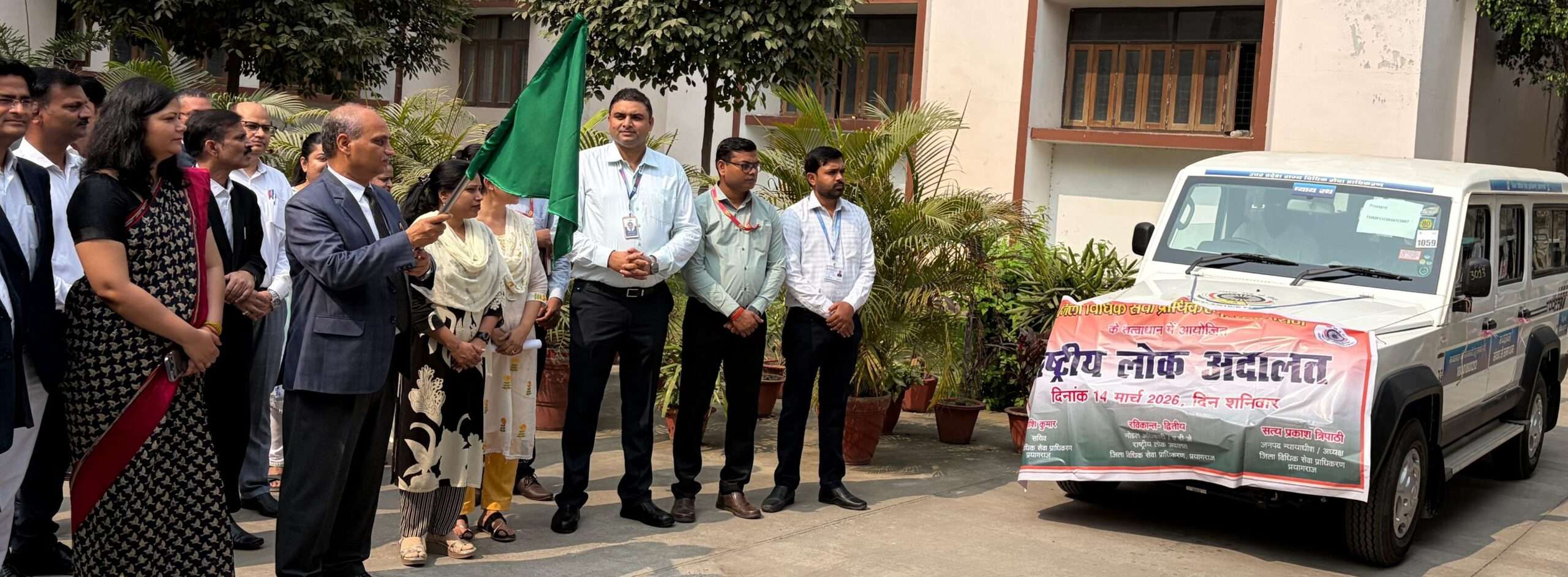 PRAYAGRAJ NEWS:  जनपद न्यायाधीश/अध्यक्ष जिला विधिक सेवा प्राधिकरण प्रयागराज श्री सत्य प्रकाश त्रिपाठी द्वारा दिनांक 14.03.2026 (शनिवार) को आयोजित होने वाली राष्ट्रीय लोक अदालत की सफलता हेतु जनपद न्यायालय परिसर, प्रयागराज से प्रचार वाहन को हरी झंडी दिखाकर रवाना किया गया। प्रचार वाहन के साथ समस्त बैंकों के प्रबंधकगण व जिला अग्रणी प्रबंधक, बैंक ऑफ बड़ौदा उपस्थित रहे। प्रचार वाहन के साथ पराविधिक स्वयंसेवक ने पूरे शहर में लोक अदालत का प्रचार प्रसार किया। इस मौके पर श्री रविकांत नोडल ऑफिसर लोक अदालतध्एडीजे व श्री शशि कुमार, सचिव जिला विधिक सेवा प्राधिकरण सहित अन्य अधिकारीगण उपस्थित रहे। दिनांक 14.03.2026 को आयोजित राष्ट्रीय लोक अदालत का प्रचार प्रसार पूरे जनपद में किया गया । समस्त  जनमानस से अनुरोध है दिनांक 14.03.2026 को आयोजित राष्ट्रीय लोक अदालत में अपने मुकदमे को चिन्हित कर स्वयं अथवा अपने अधिवक्ता के साथ उपस्थित हो कर उसका निस्तारण  कराए। यह जानकारी सचिव जिला विधिक सेवा प्राधिकरण शशि कुमार द्वारा प्रदान की गई।