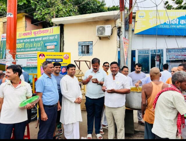 KUSHINAGAR NEWS: कसया नगर पालिका अध्यक्ष प्रतिनिधि राकेश जयसवाल और वार्ड नं 24 के सभासद राजेश मद्धेशिया ने सर्वप्रथम प्रसाद वितरण कर शुभारंभ किया ।
