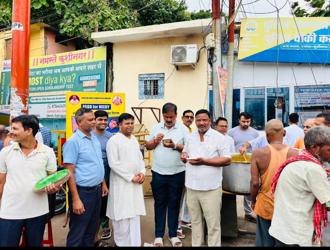 जिसने हरे कृष्ण मंदिर कुशीनगर के अध्यक्ष गोविन्द गोपाल दास ने कहा की प्रत्येक रविवार को यह प्रसादम वितरण प्रोग्राम अनवरत कसया नगर में हरे कृष्ण मंदिर द्वारा चलता रहेगा । इसमें हर्ष गुप्ता,सोनी,सत्यम,विजय,हरिनारायण,संजय, अजय, विनय ,नन्हे, विनोद श्रीवास्तव, अनुभव, आदी, अभिनव, नितेश एवं अन्य भी बहुत से भक्त मौजूद रहे ।