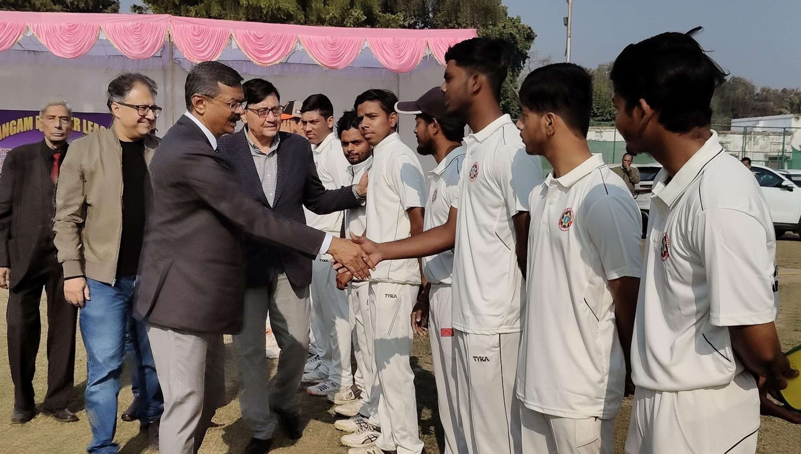 फोटो:1 संगम प्रीमियर लीग में खिलाड़ियों से परिचय प्राप्त करते इलाहाबाद हाईकोर्ट बार एसोसिएशन के अध्यक्ष राकेश पांडेय
